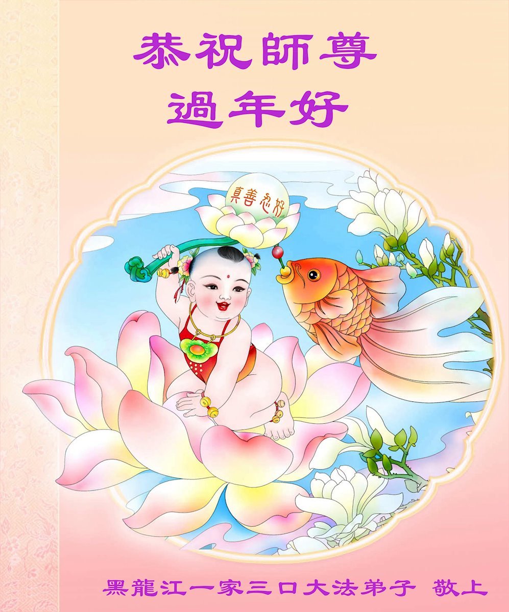師父過年好!我們一家三口無比感謝師父的救度!因為修煉大法,我們家庭幸福和睦,每位家庭成員都按照高標準要求自己,很少爭吵,互相體諒。因為修煉大法,我們家與人相處時,不怕吃虧,有道德涵養,孝敬老人,友善親友,不計較得失。感謝師父賜予的一切,謝謝師父!一家三口叩謝師恩!
