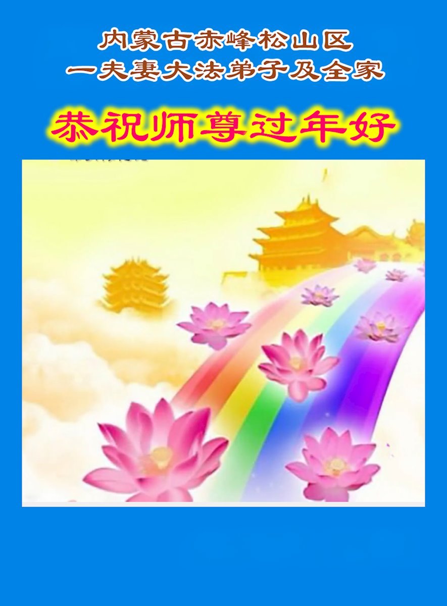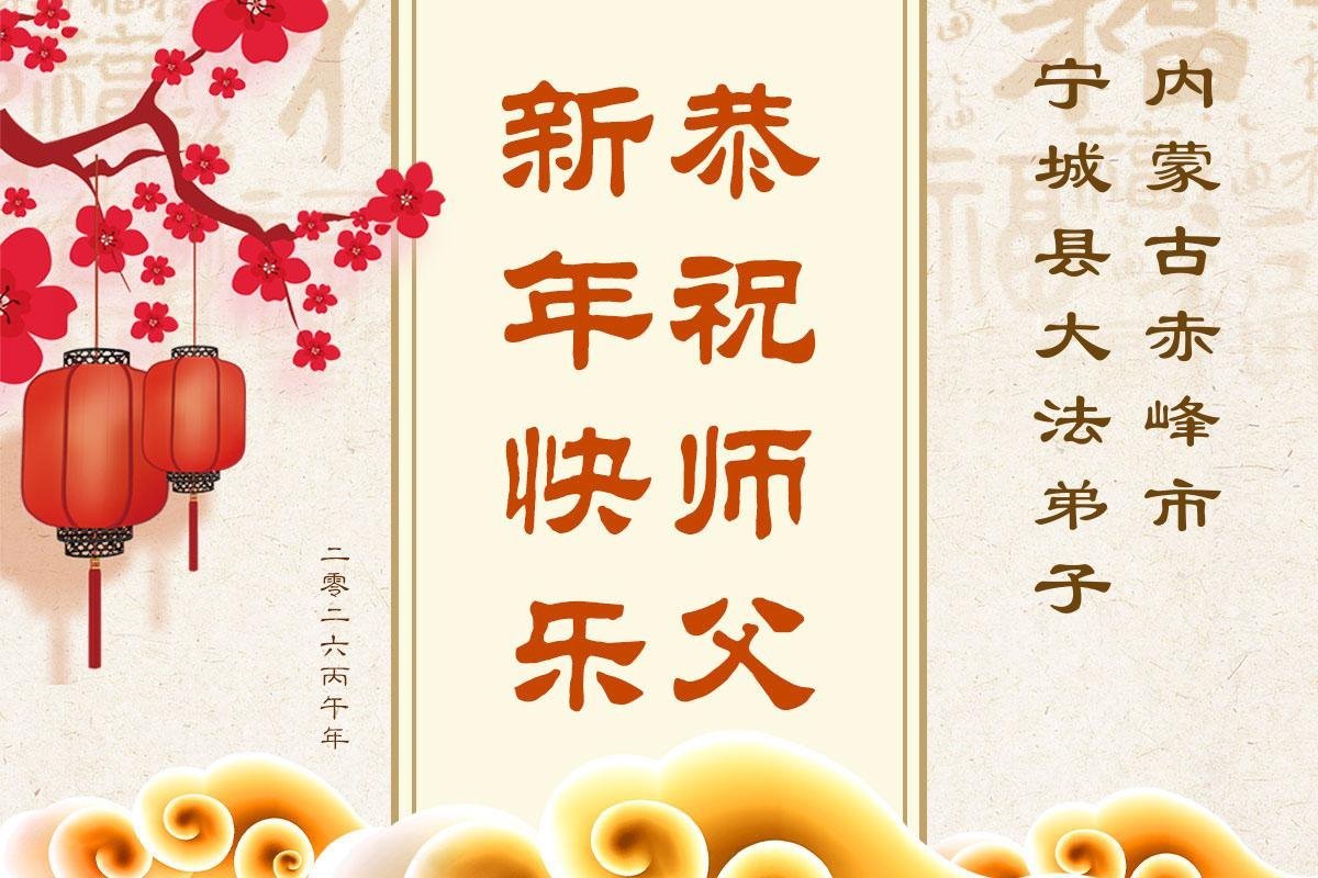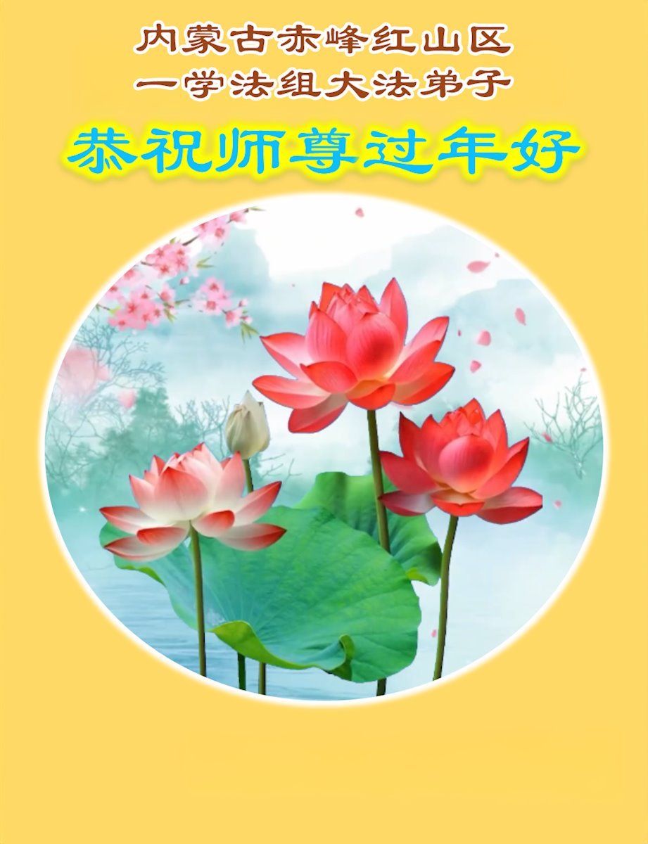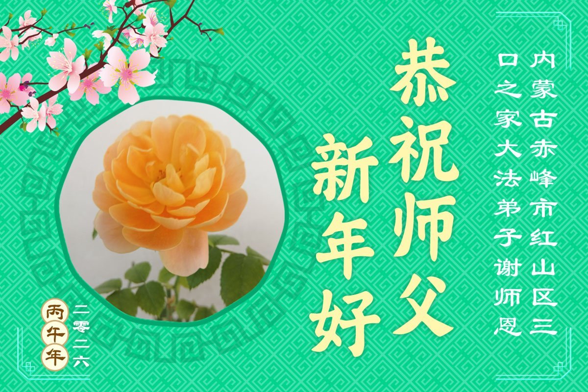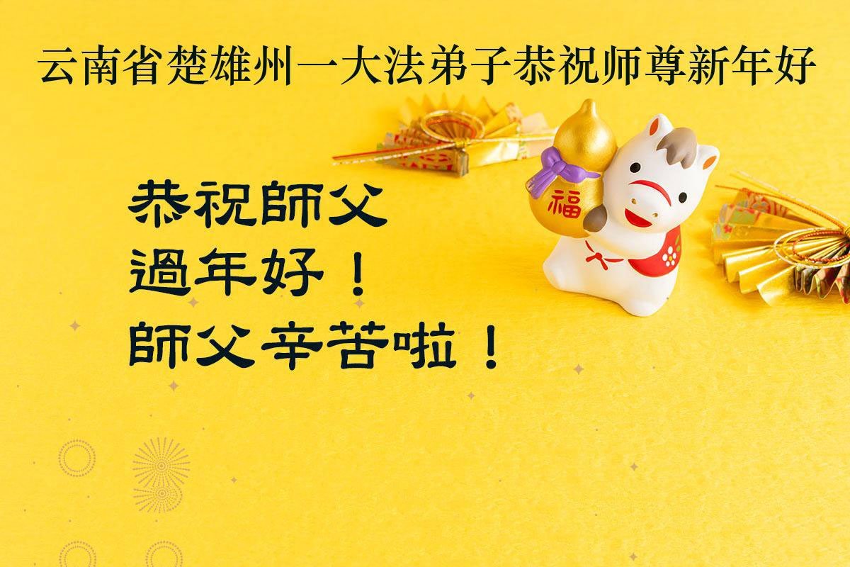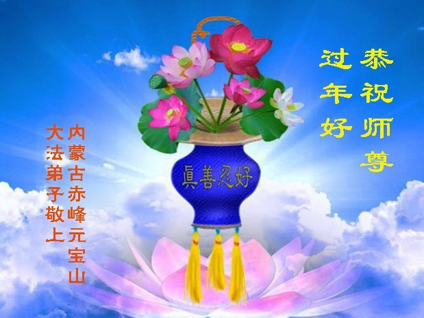 弟子在這傳統佳節到來之前,給大洋彼岸的師尊拜年,恭祝師尊新年快樂!弟子會完成大法弟子的使命,講真相救眾生,做好三件事。弟子決心修好自己,走好最後修煉的路,圓滿隨師還。