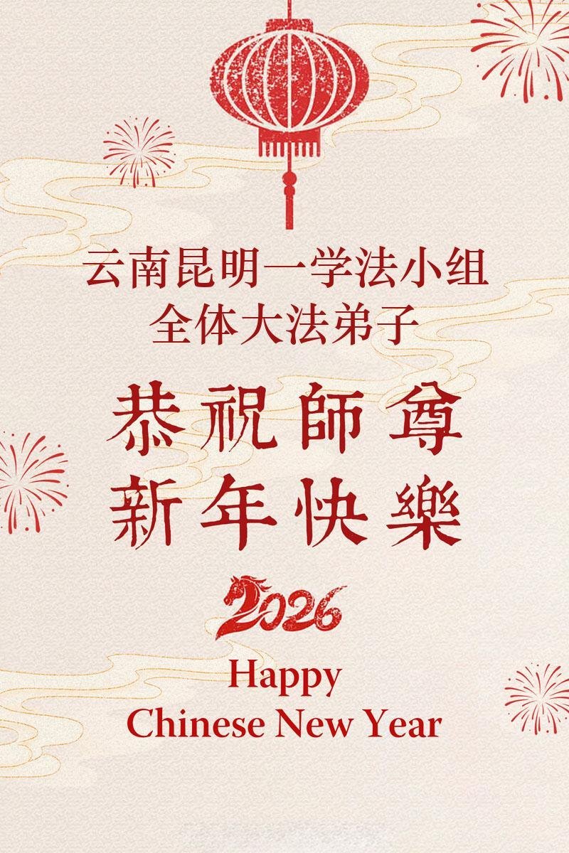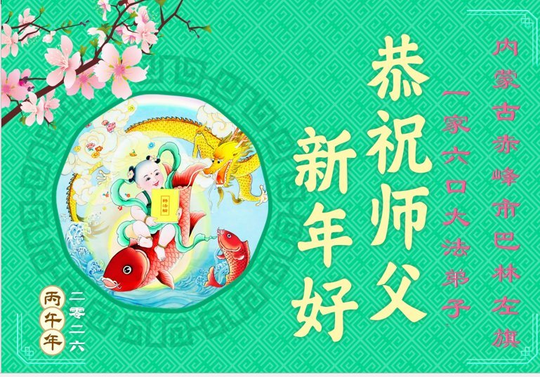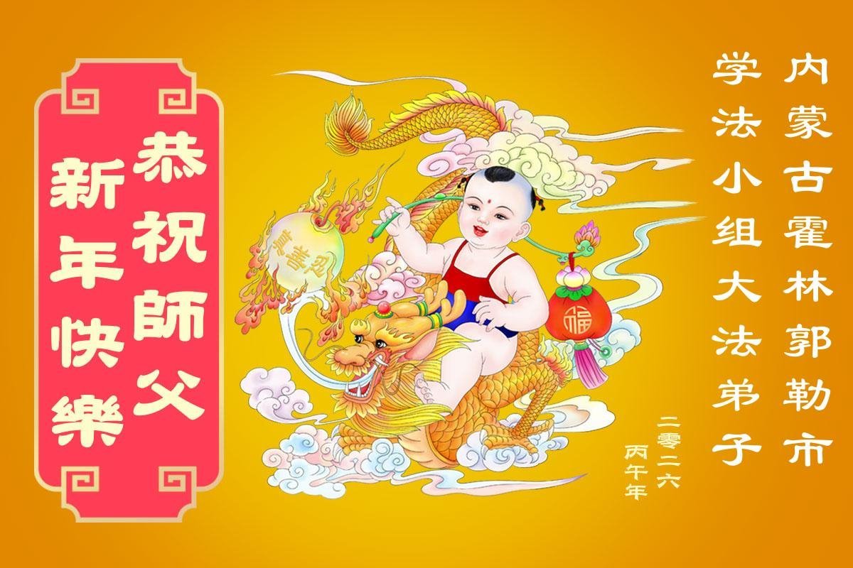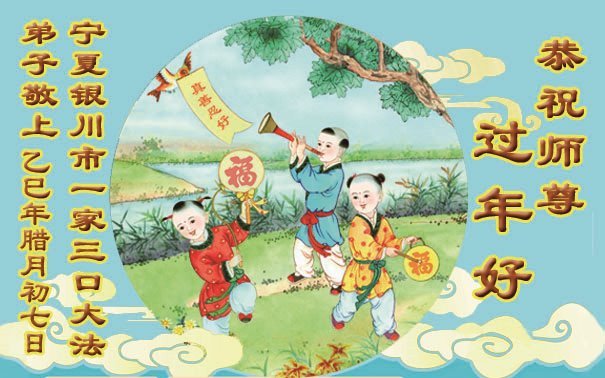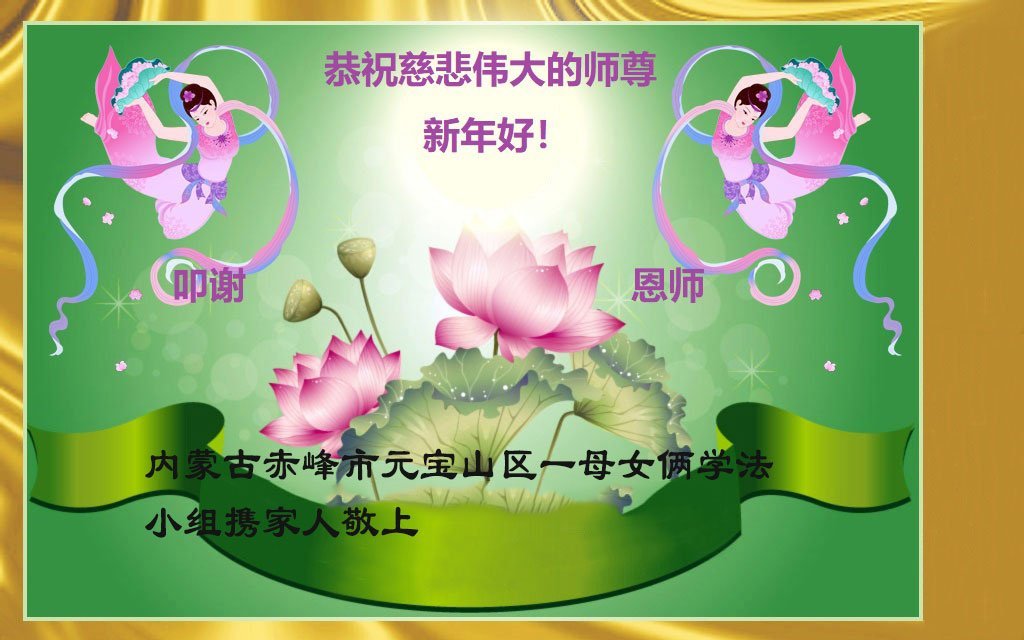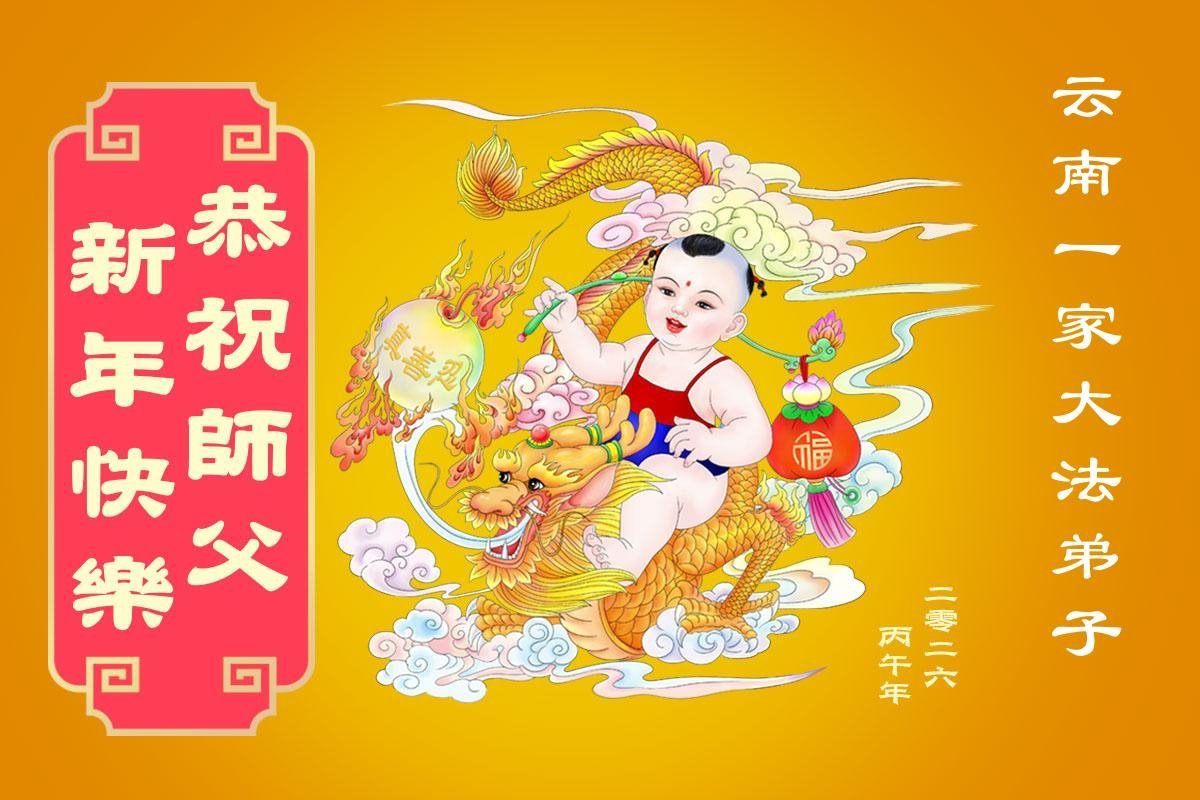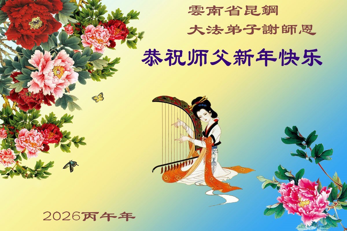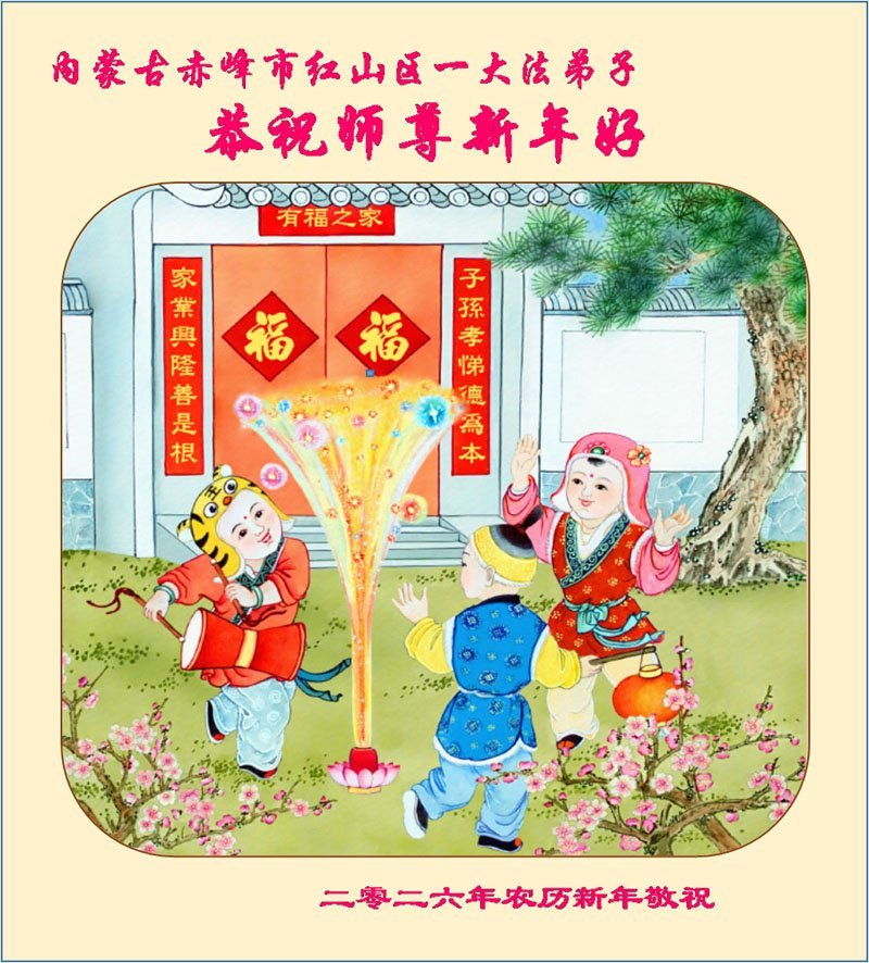 弟子在這傳統佳節到來之前,給大洋彼岸的師尊拜年,恭祝師尊新年快樂!弟子會完成大法弟子的使命,講真相救眾生,做好三件事。弟子決心修好自己,走好最後修煉的路,圓滿隨師還。