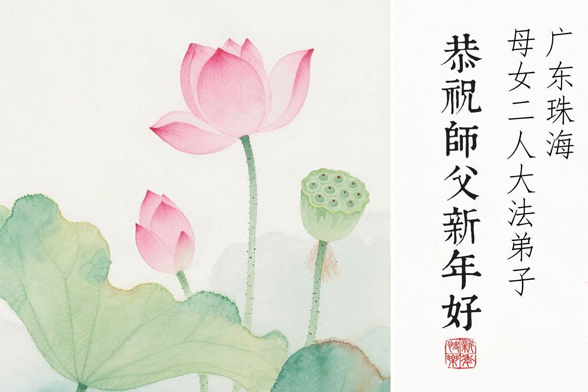 廣東珠海母女二人大法弟子恭祝師尊新年好!