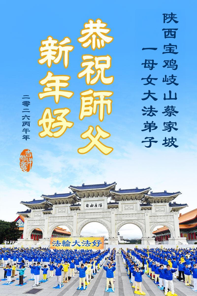 陝西省寶雞岐山蔡家坡一母女學法小組大法弟子恭祝師尊新年快樂!