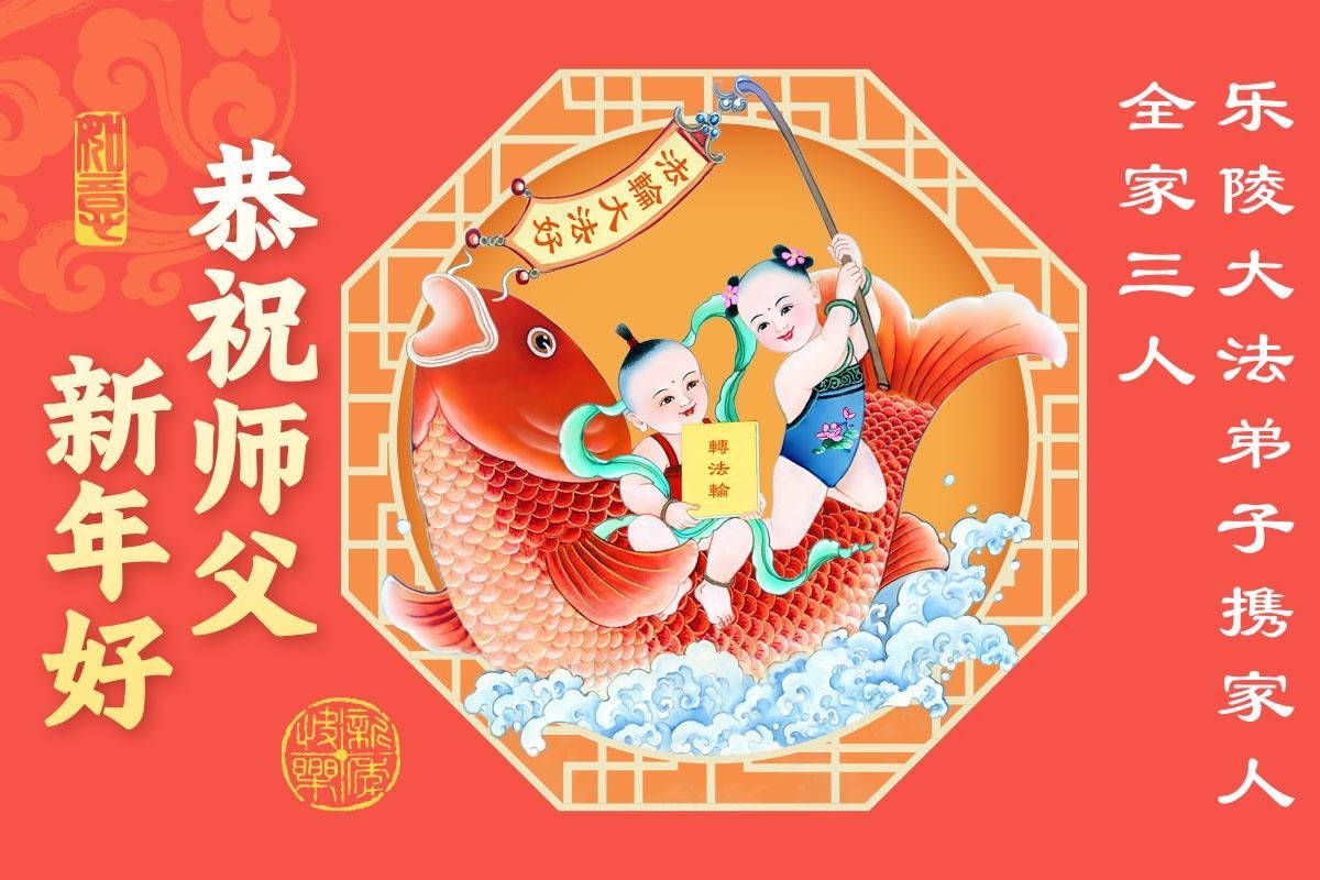 山東煙台大法弟子一家恭祝慈悲偉大的師尊過年好!