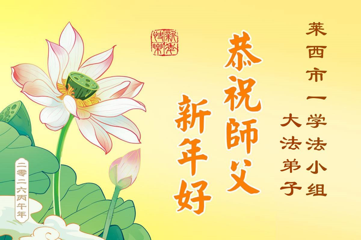 感謝師父的一路守護、陪伴,弟子才走到今天。在新的一年裏,弟子要堅定正念,精進實修,向內找去執著,做好弟子應該做的三件事,多救人,兌現史前的誓約,完成使命,跟師父回家。