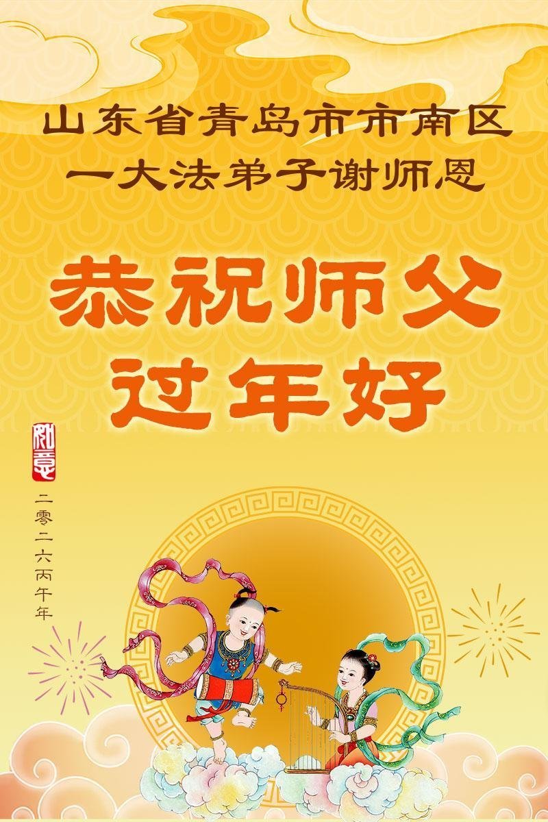 山東青島一大法弟子恭祝慈悲偉大的師尊新年快樂!