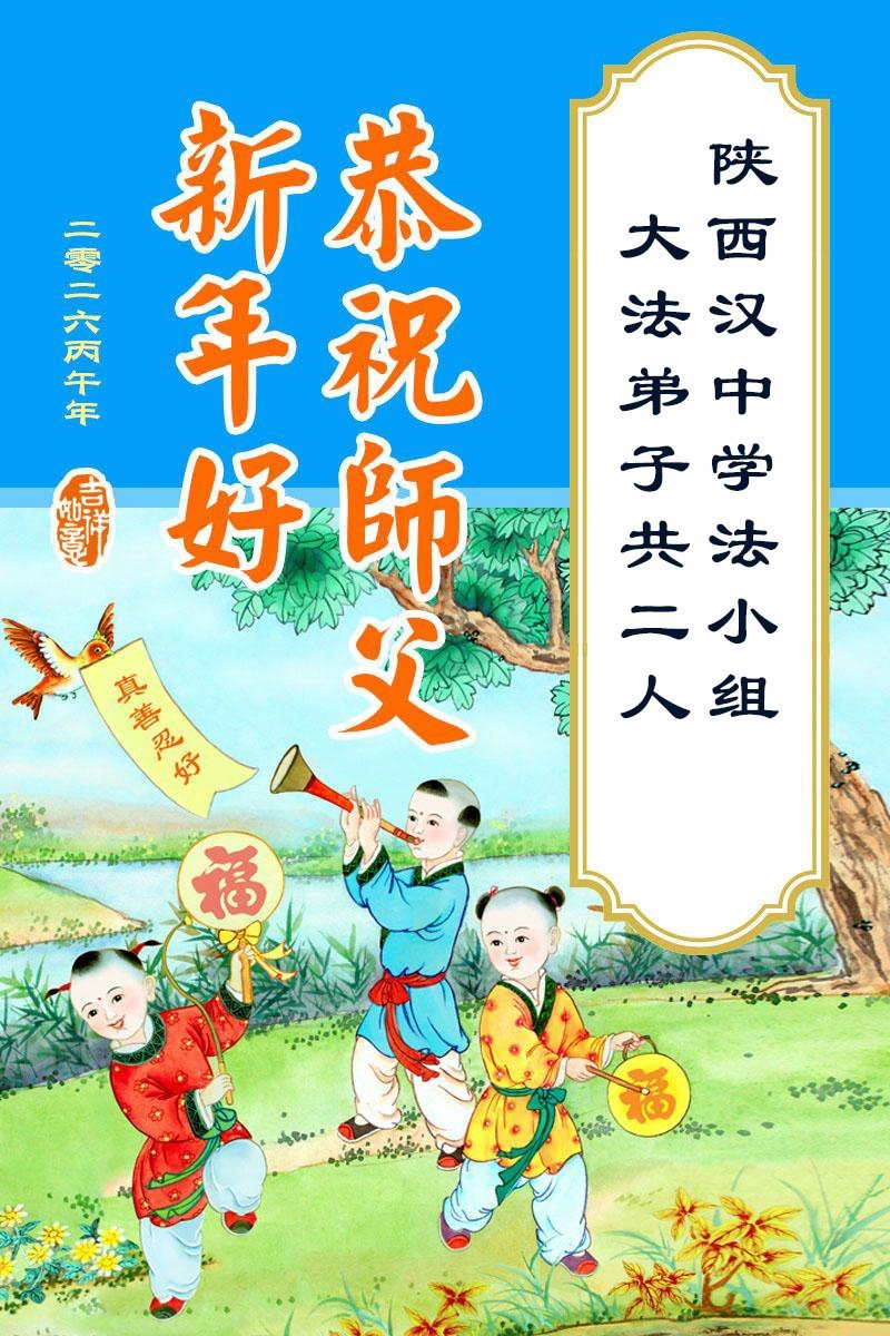 陝西省漢中市三位大法弟子及家人恭祝師父新年好!