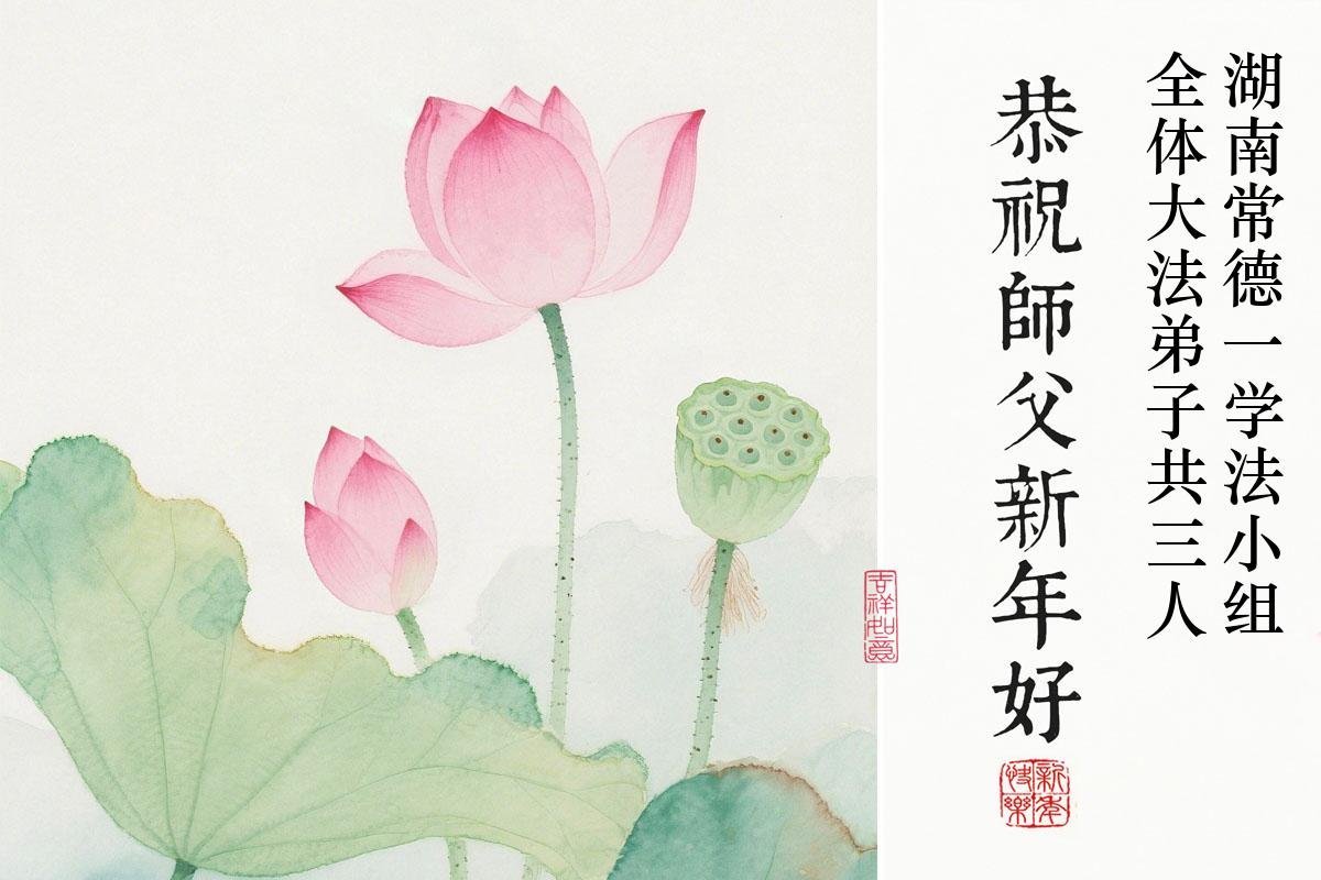 在新年到來之際,我們學法小組大法弟子恭祝師尊新年快樂!弟子們一定努力實修,有病業假相的學員也走過了病業磨難,都堅定的信師信法,我們會一起完成史前大願,不辱使命。謝謝師父的慈悲苦度,叩拜師尊!