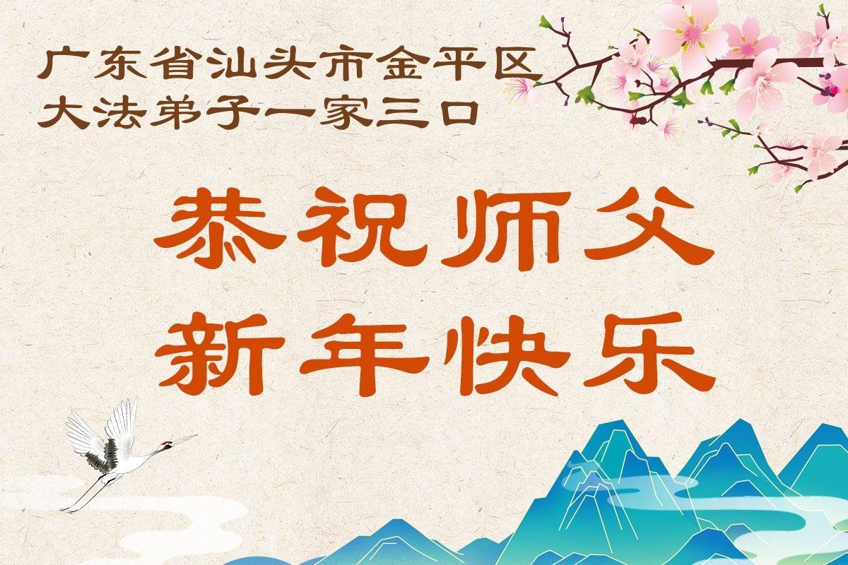 廣東省汕頭市金平區大法弟子一家三口敬上