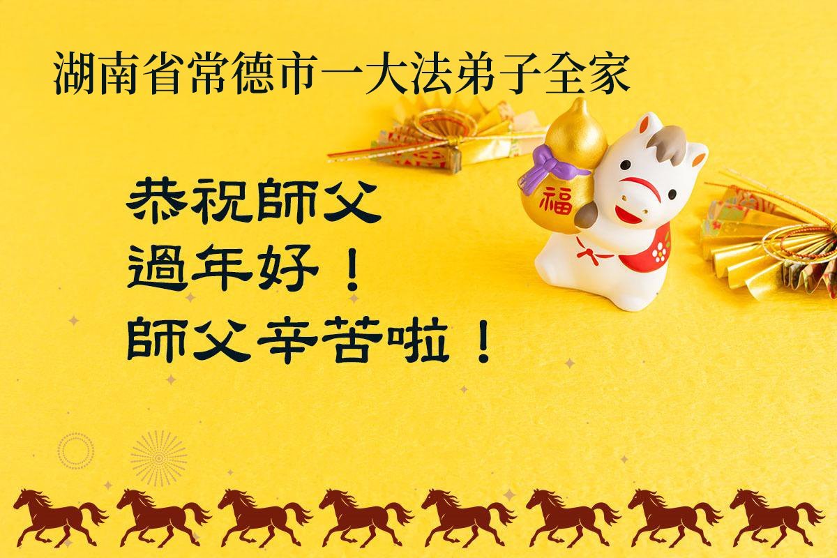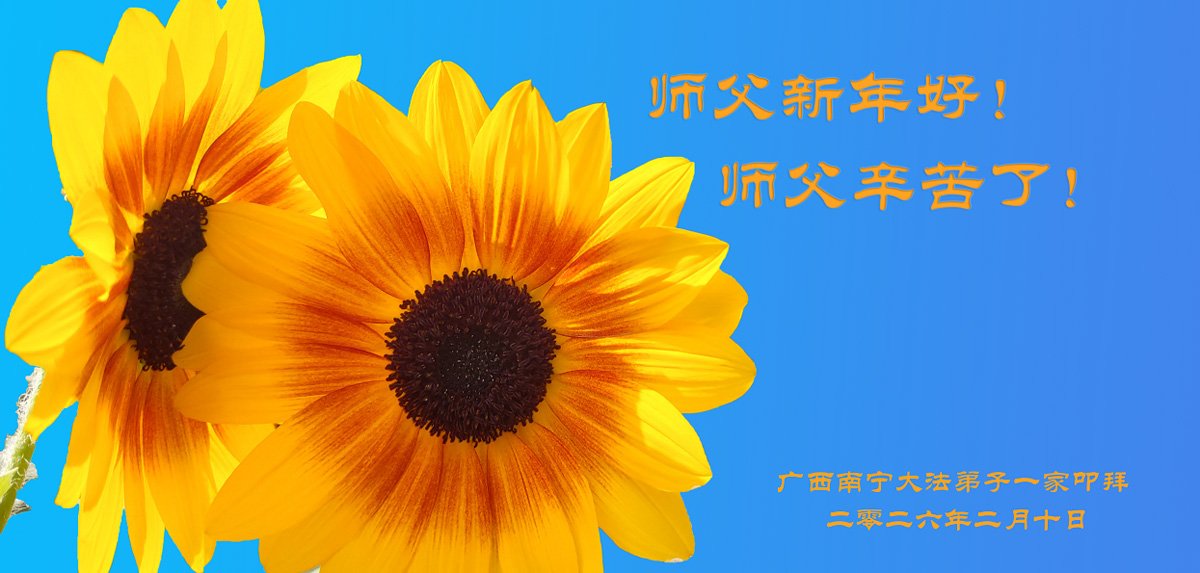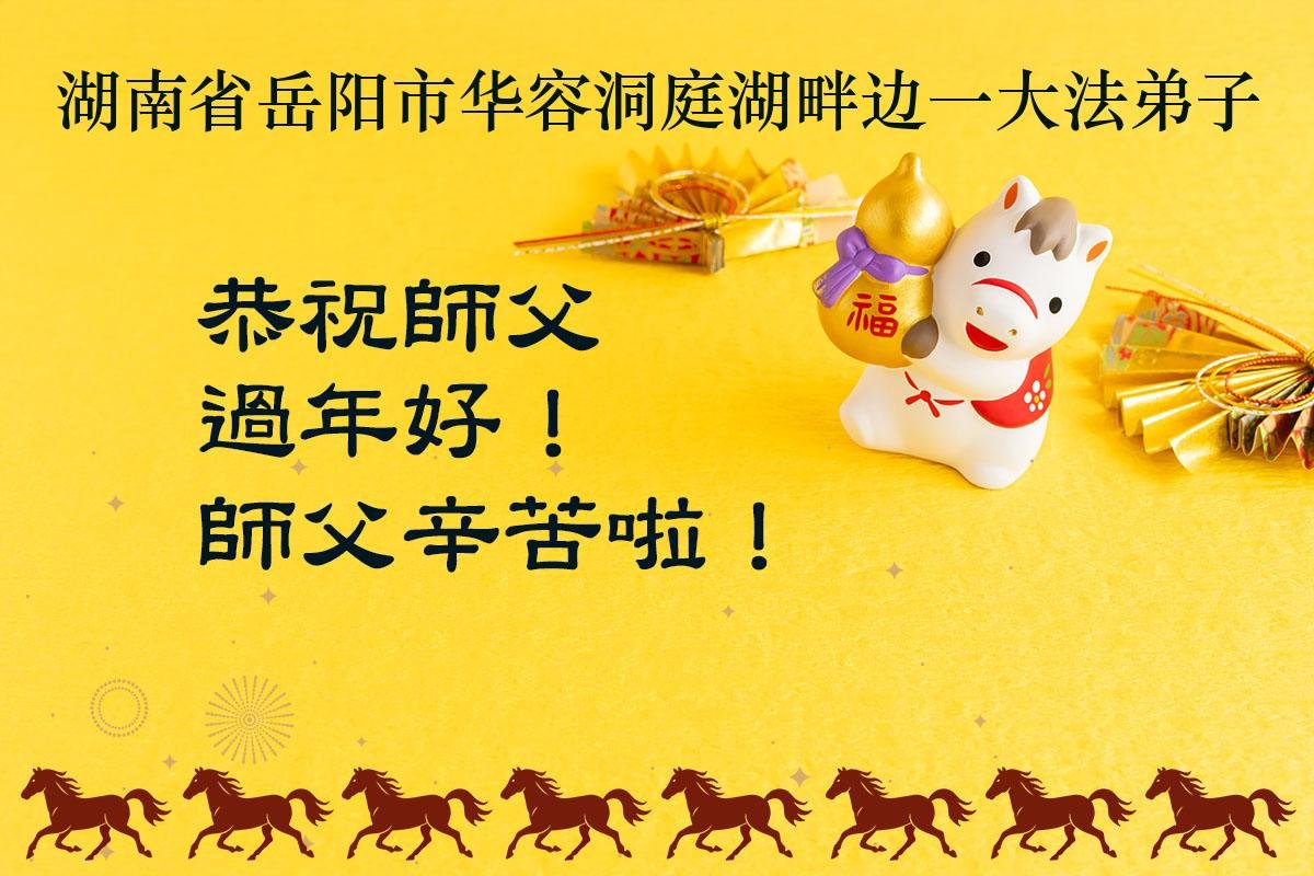 弟子給師尊拜年!為了宇宙正法救度眾生,為了使弟子們完成使命返本歸真,師尊您付出得太多太多了!您太辛苦了!作為您的弟子更是想念師尊、感恩師尊!敬謝師尊救度的聖恩!我們一定珍惜這萬古難遇的正法修煉機緣,真修,實修。抓緊做好三件事,用正念正行來回報師尊,惟願師尊笑!跟著師尊回家園。