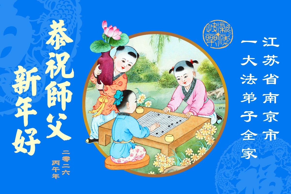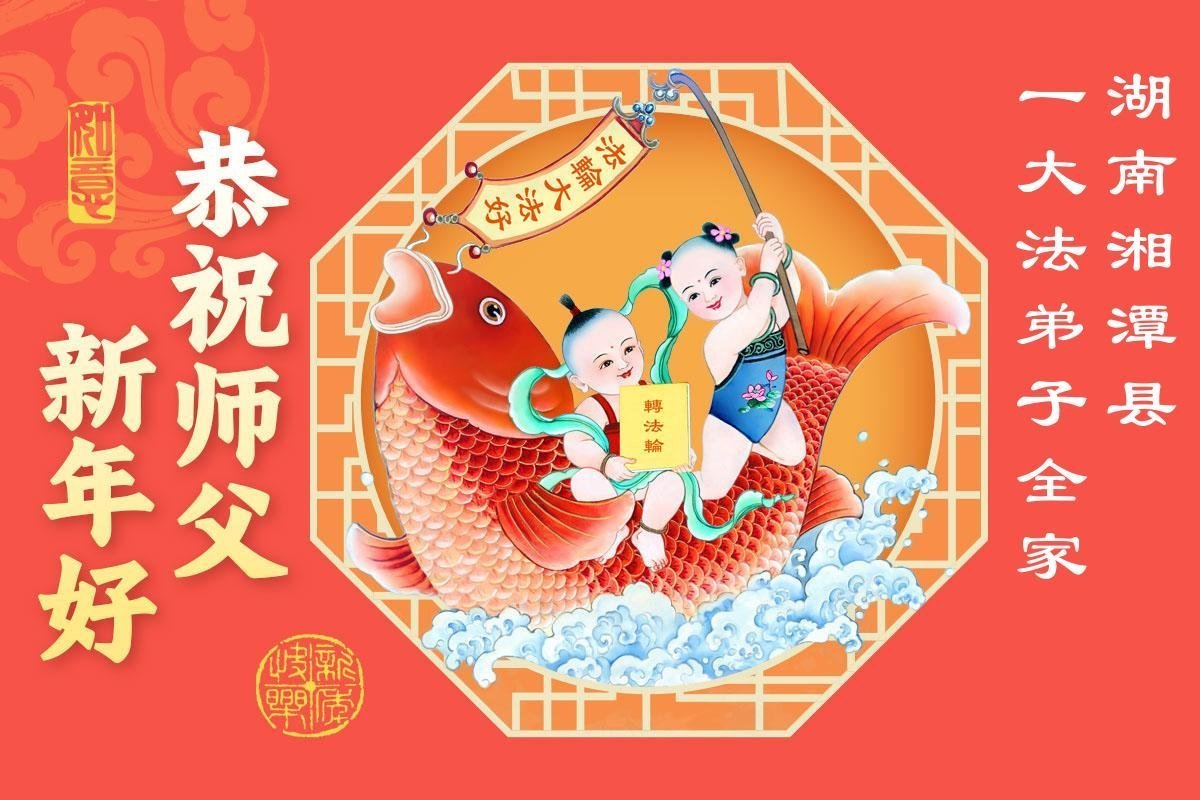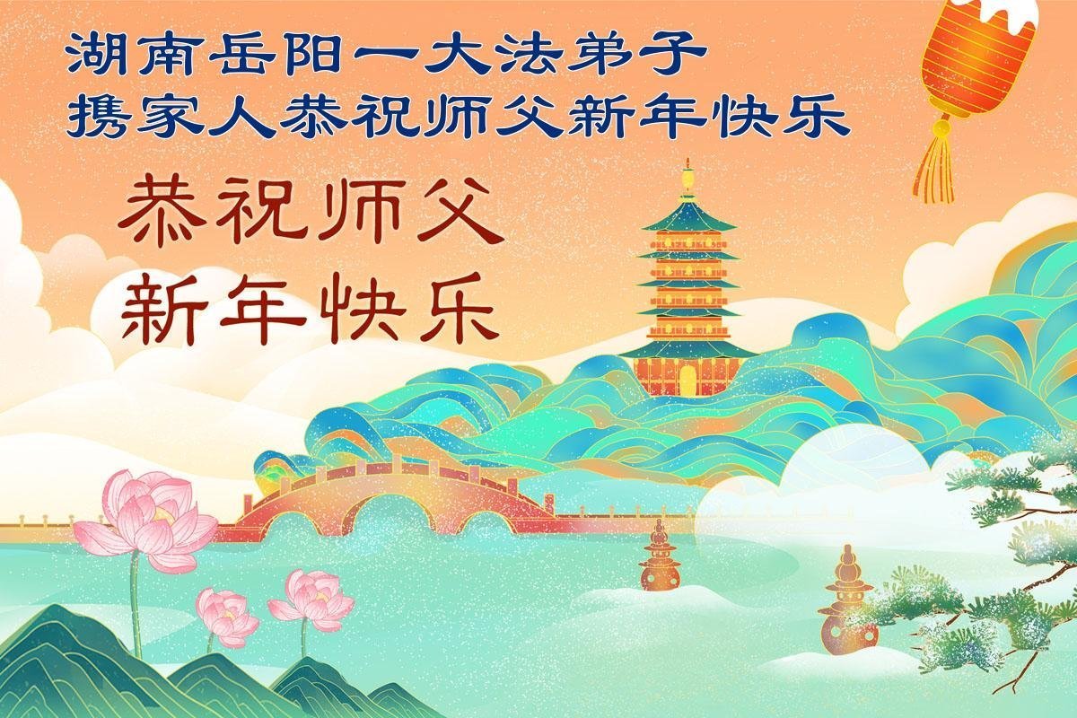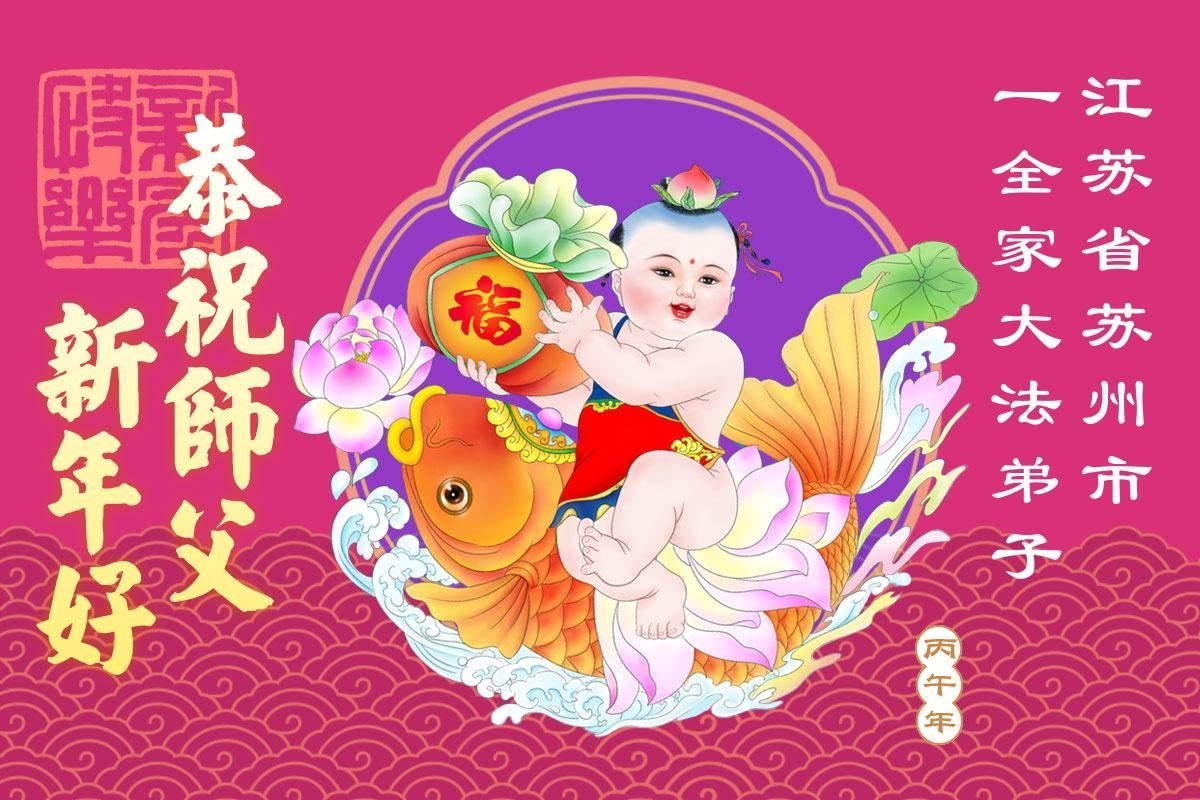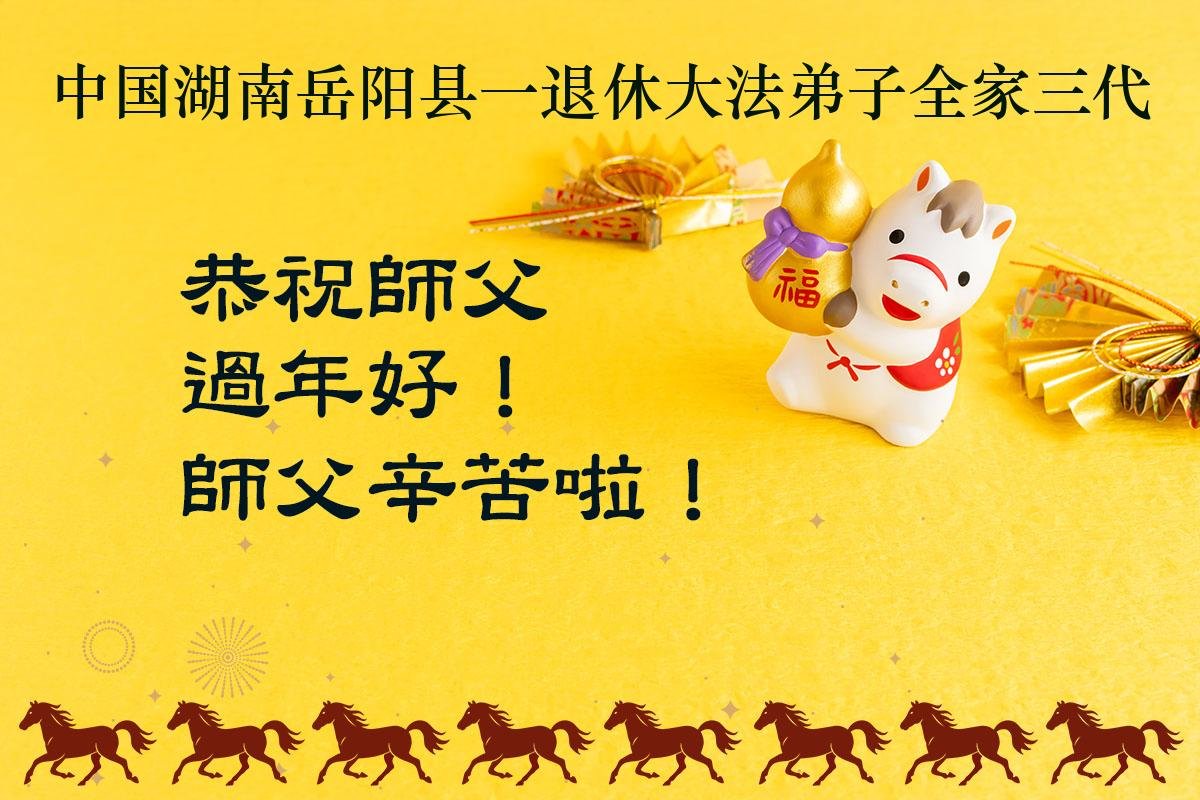 師父新年好!弟子攜小孫女跪拜恩師,恭祝偉大的師父新年快樂!弟子感恩師尊的慈悲苦度!師父為了弟子、為了眾生承受巨大,師父您辛苦了!弟子唯有精進實修,多救人,做好三件事,以報師恩。盼偉大的師父早日回大陸。