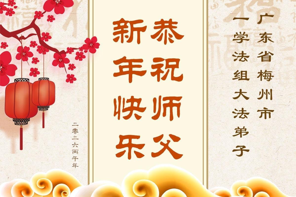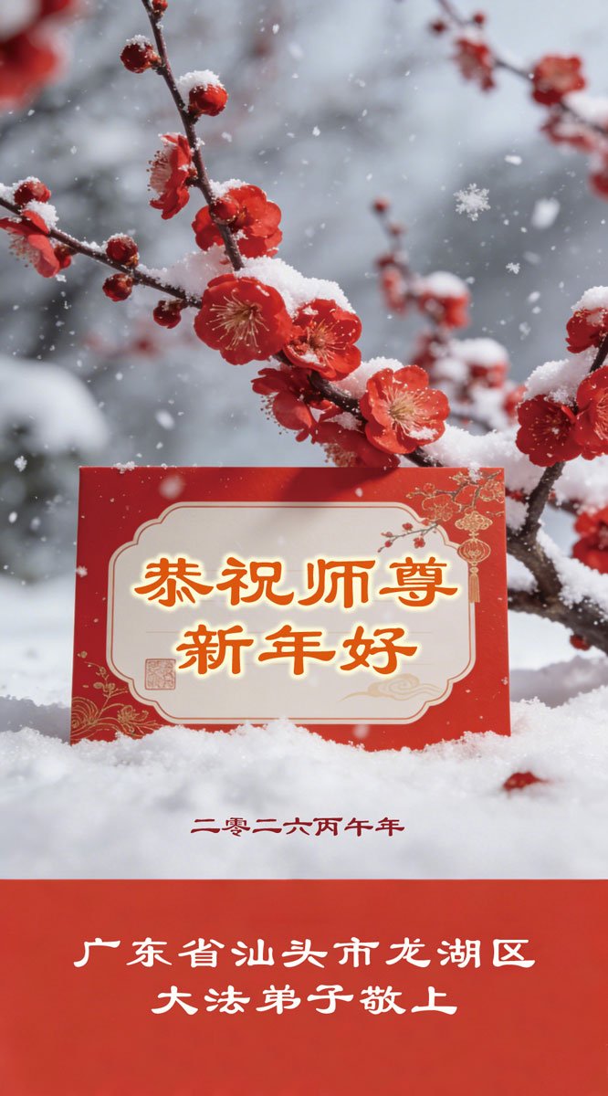 恭祝師尊新年快樂!弟子們隨師尊正法、救度世人,越到最後越精進,不鬆懈,無論遇到甚麼考驗,永不言棄。