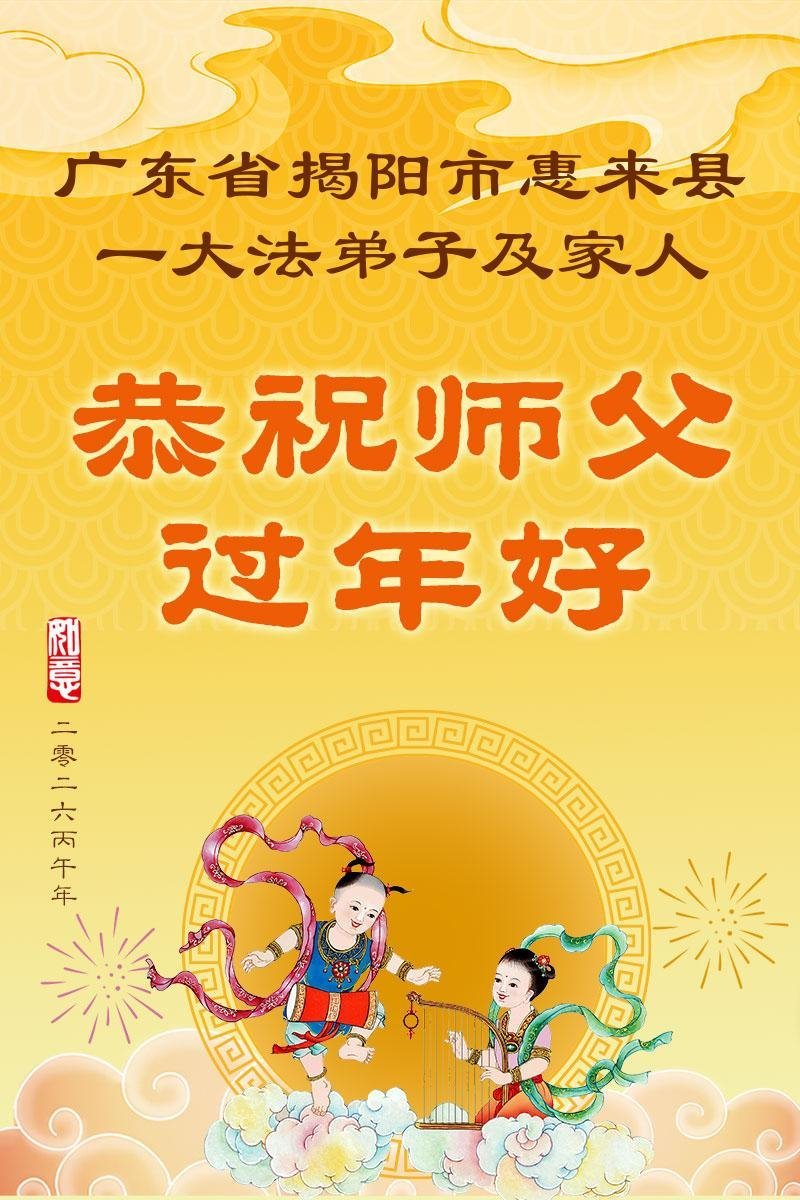 廣東省揭陽市惠來縣一大法弟子及家人敬上