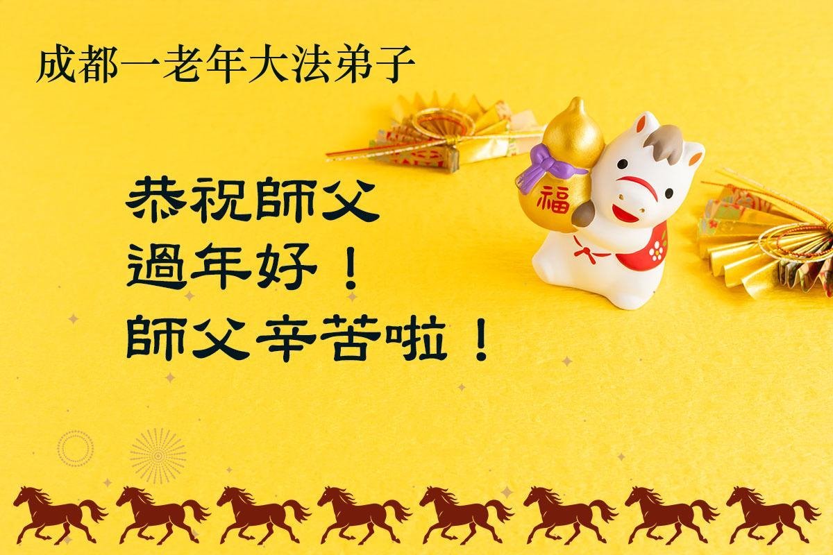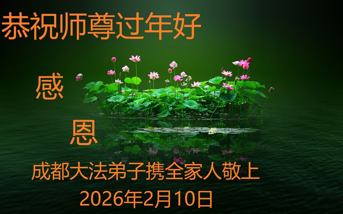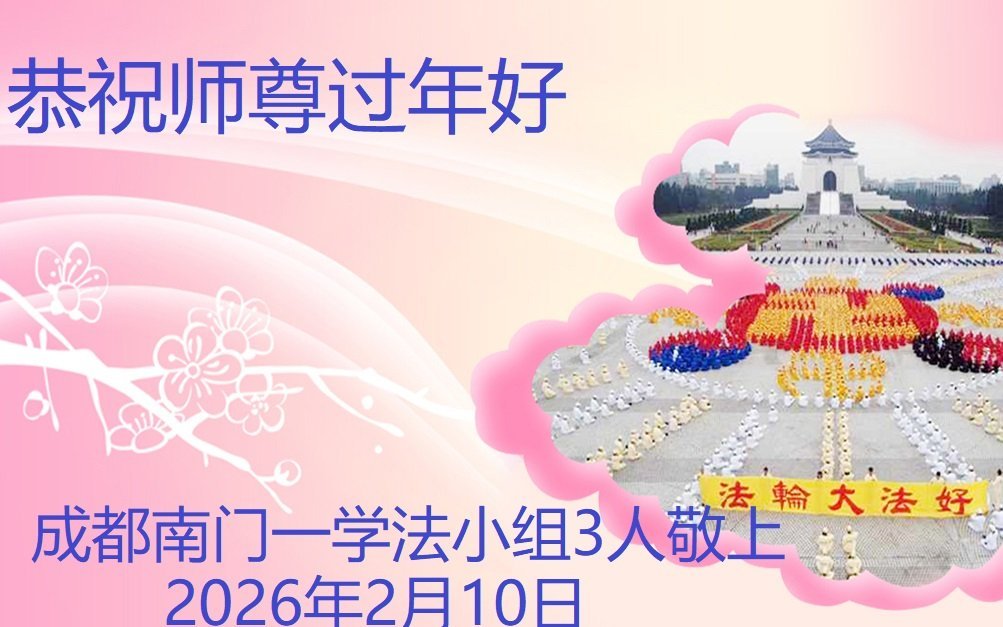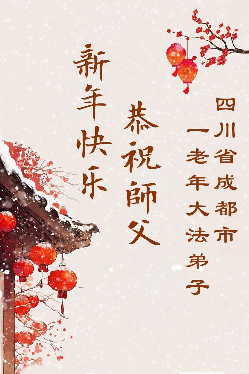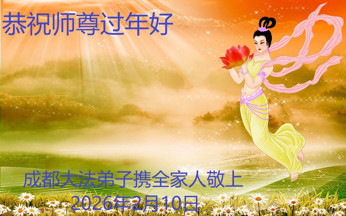 新的一年到來了,弟子給師尊拜年!在這新的一年裏,弟子一定要多學法,學好法,向內找,做好三件事,來報答師尊的救度之恩,圓滿隨師還。