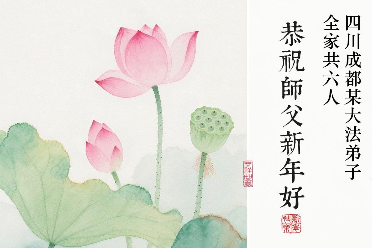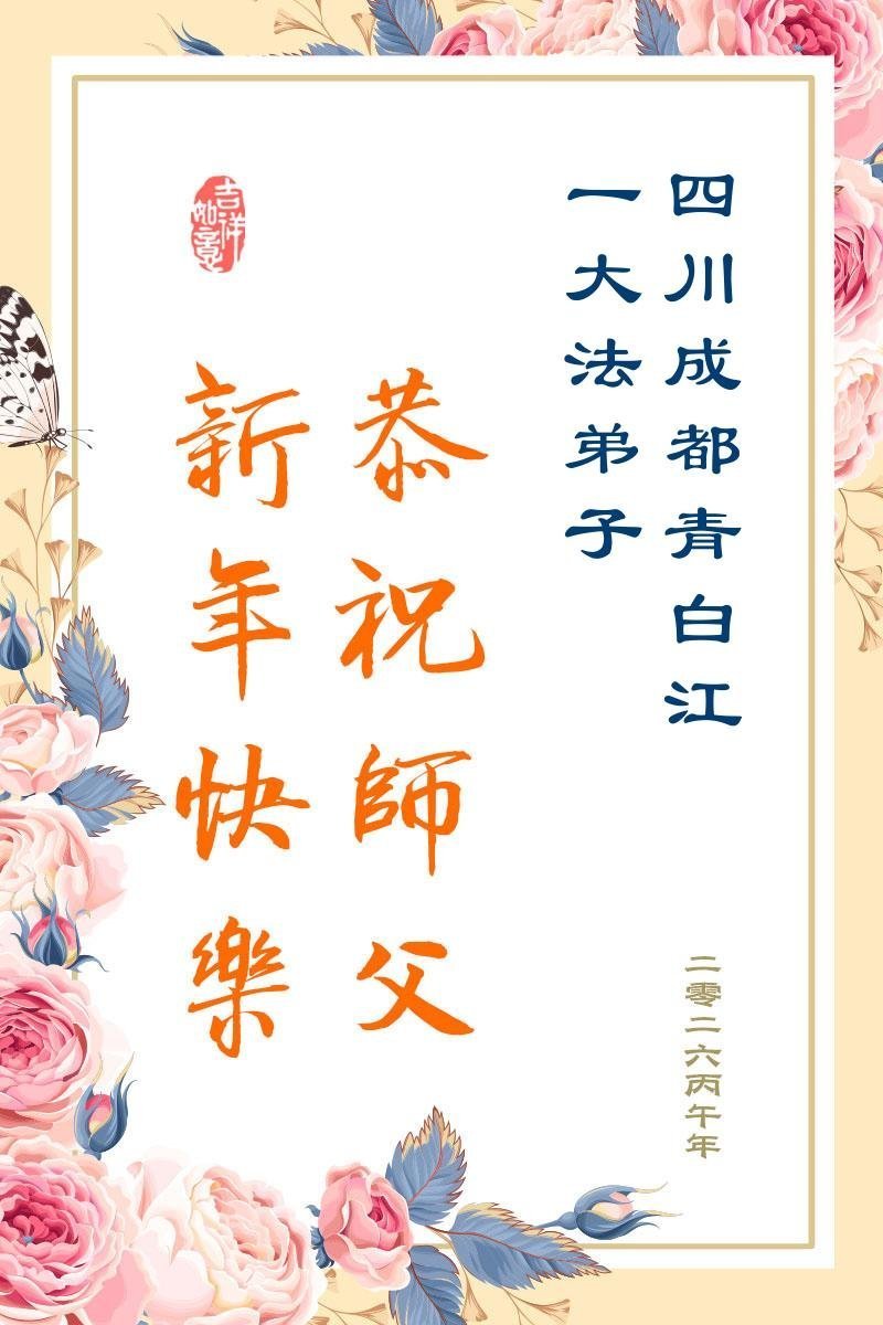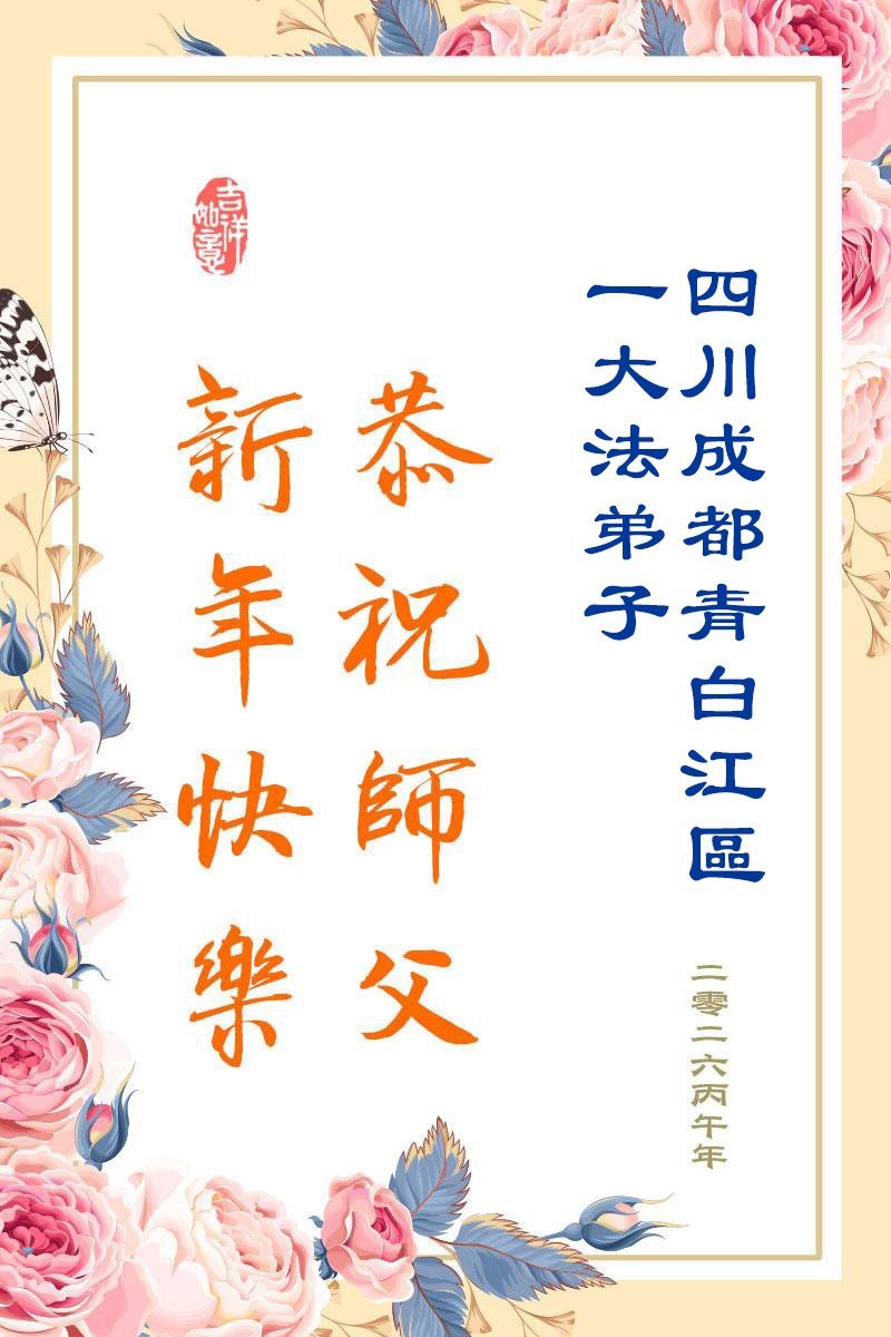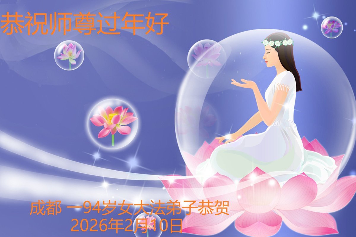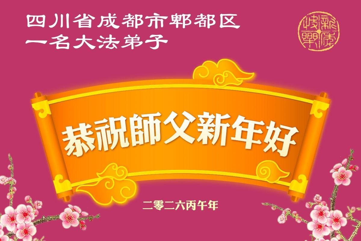 新的一年到來了,弟子給師尊拜年!在這新的一年裏,弟子一定要多學法,學好法,向內找,做好三件事,來報答師尊的救度之恩,圓滿隨師還。