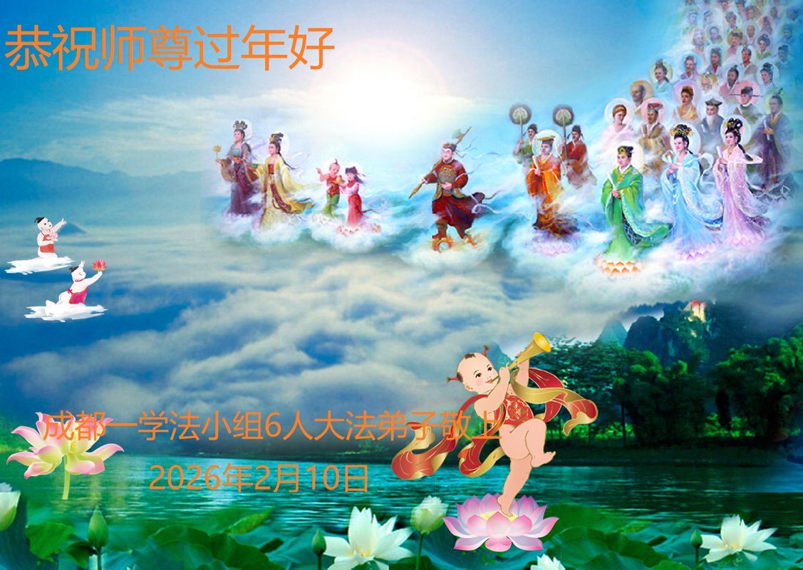 恭祝慈悲偉大的師尊新年快樂!正法又進入了新的一年,我們小組大法弟子牢記師尊教誨,做好三件事,跟上正法進程,跟師父回家。