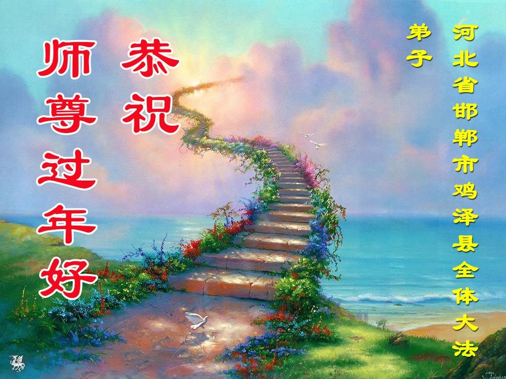 恭祝師尊新年快樂!在新的一年裏弟子會多學法,多修心性,多救人,做好三件事,兌現誓約!