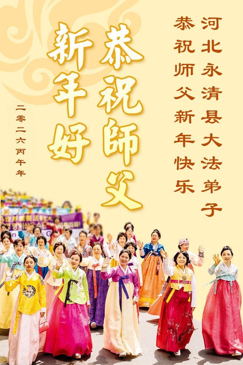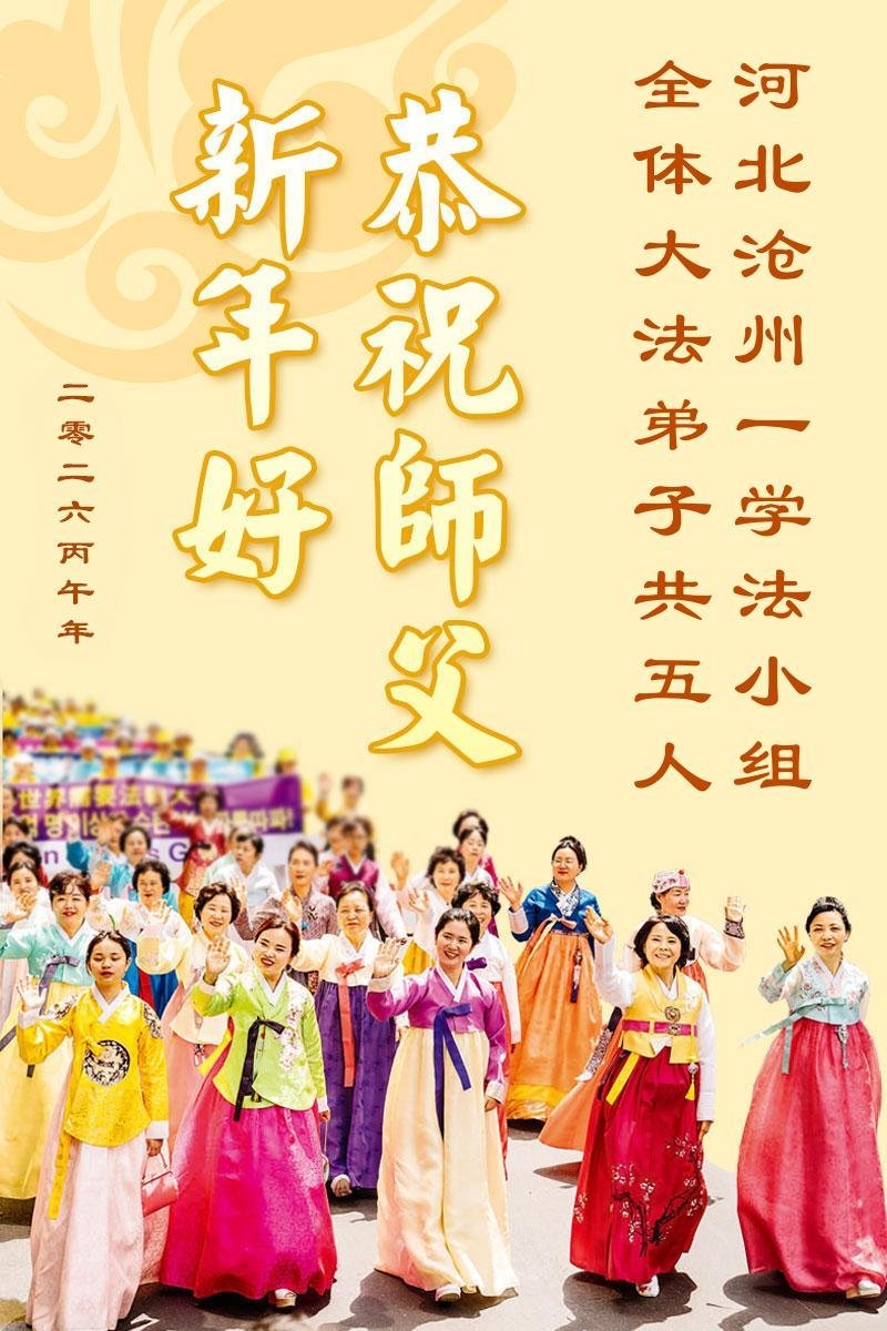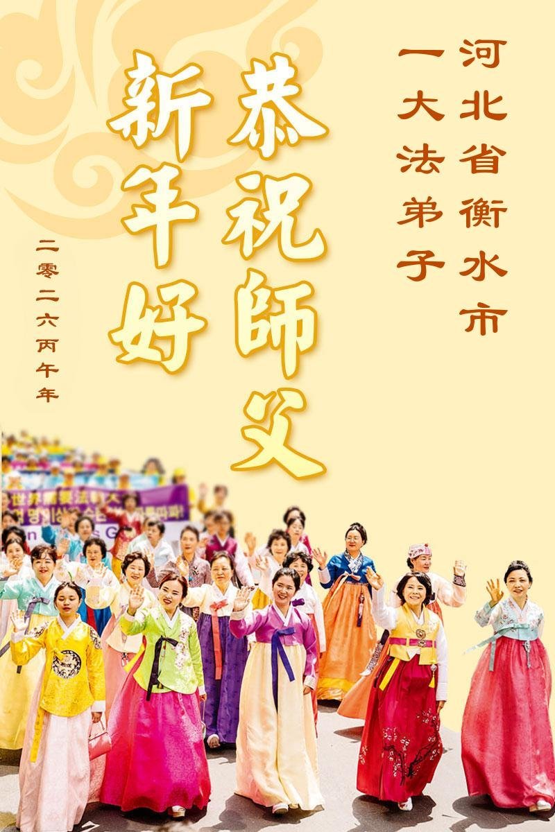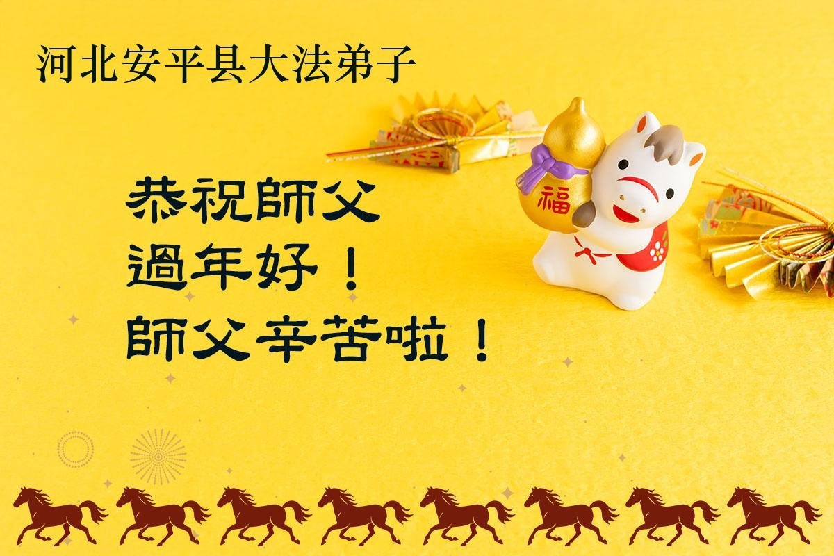 師尊好!您為救度眾生歷盡千辛萬苦。弟子們感恩的話無以言表,只道一聲師尊辛苦了!在這辭舊迎新的時刻,我們河間全體大法弟子給師尊拜年!