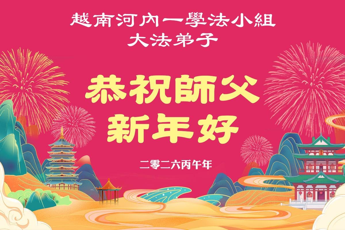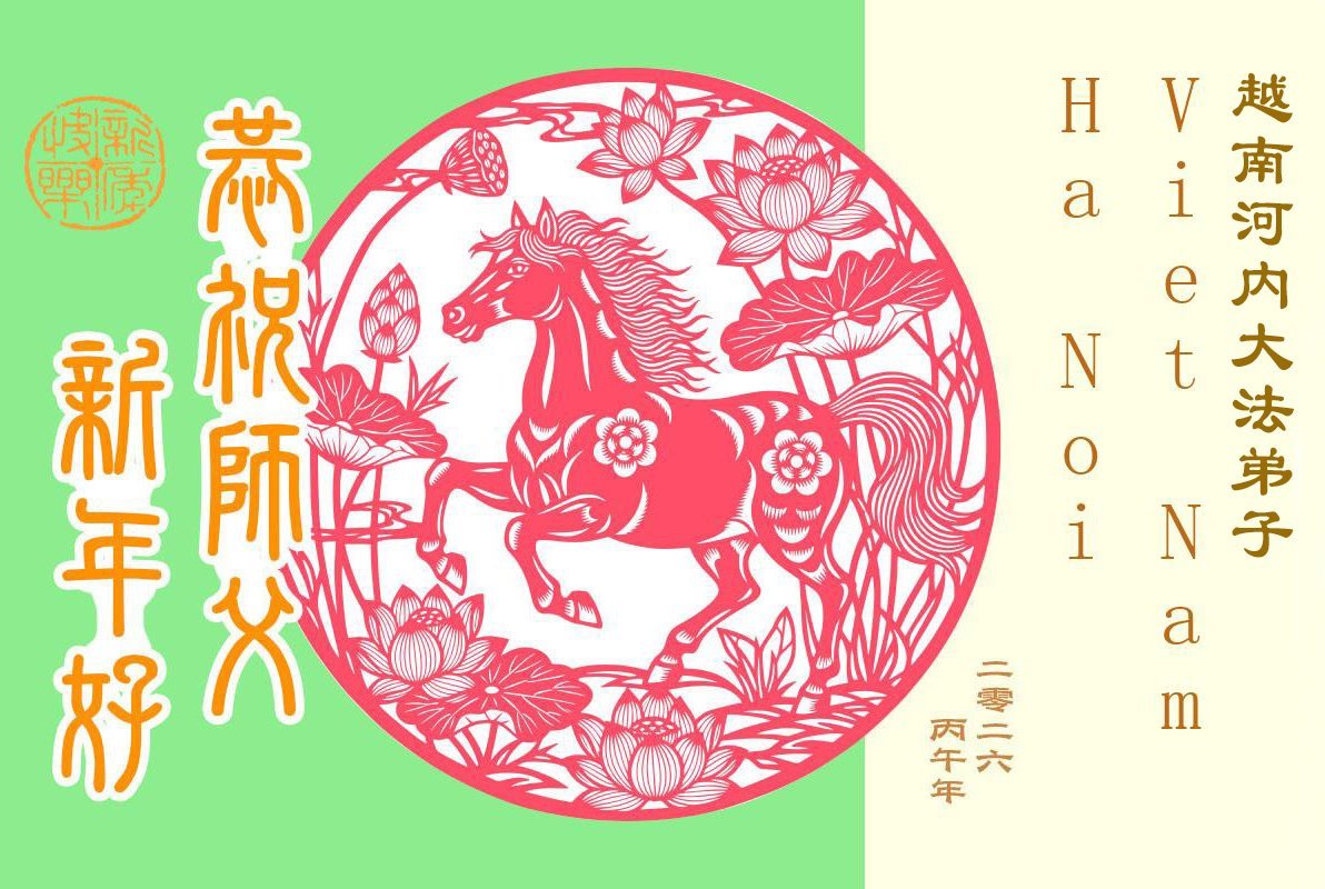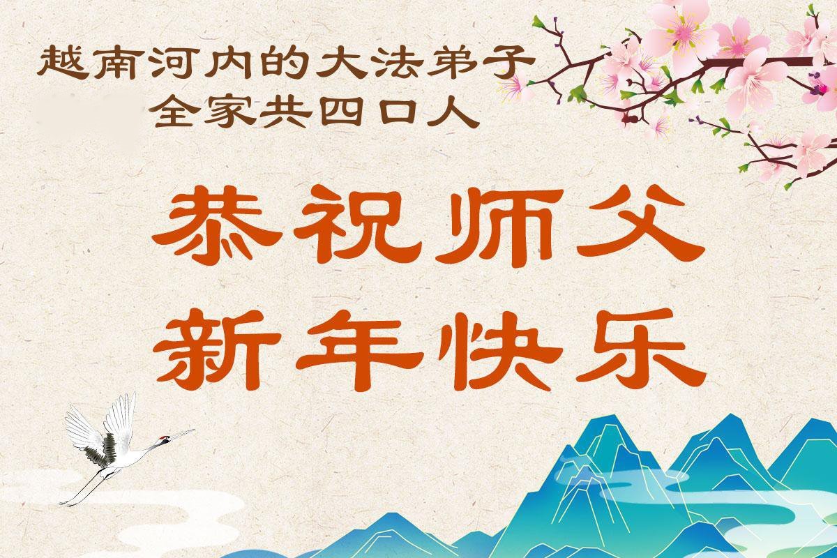 越南河內法輪大法弟子感謝慈悲偉大的師父。恭祝師父新年快樂!法輪大法好,真善忍好!