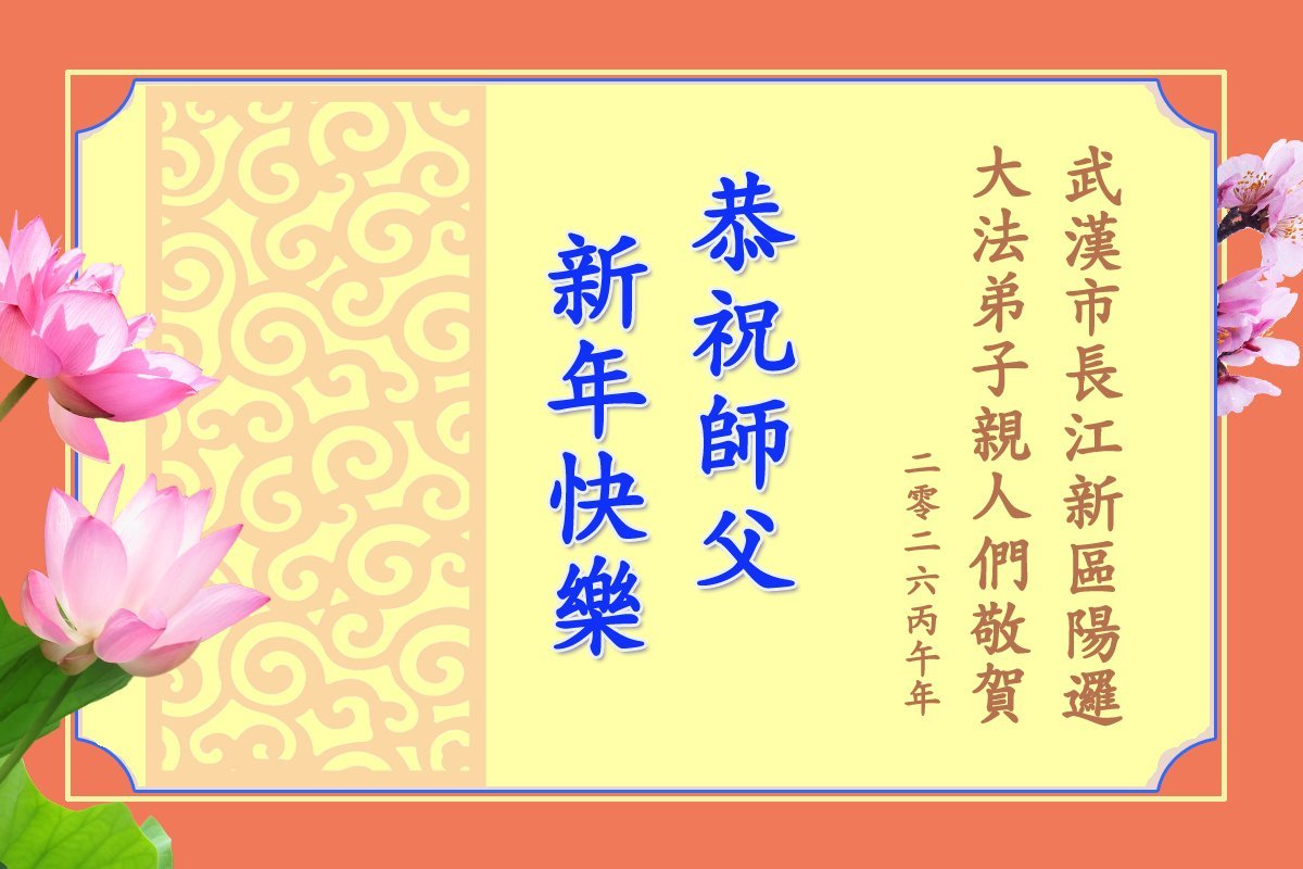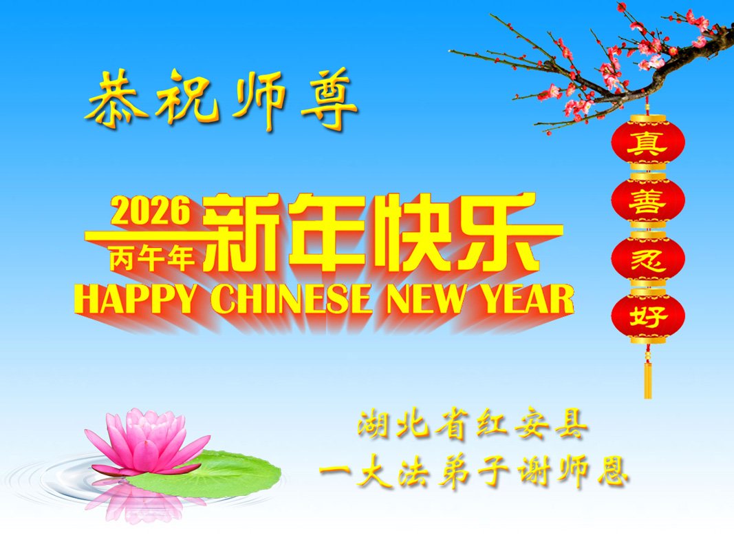 尊敬的師父新年好!萬分感謝慈悲偉大的師父,師父辛苦了!我沒有修煉,但我知道法輪大法好,真、善、忍好,支持妻子修煉,傳真相救人。