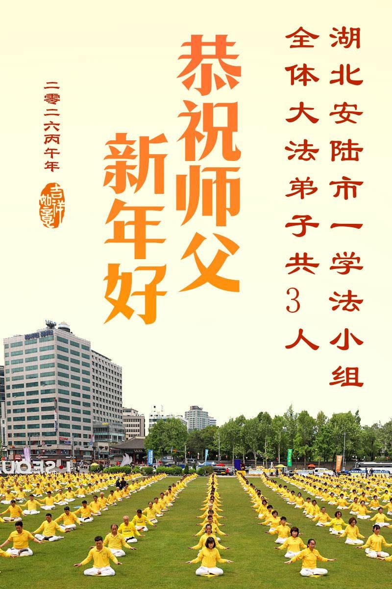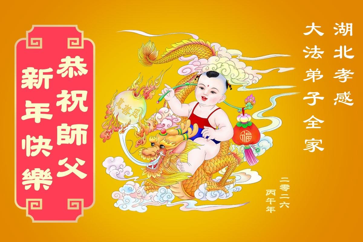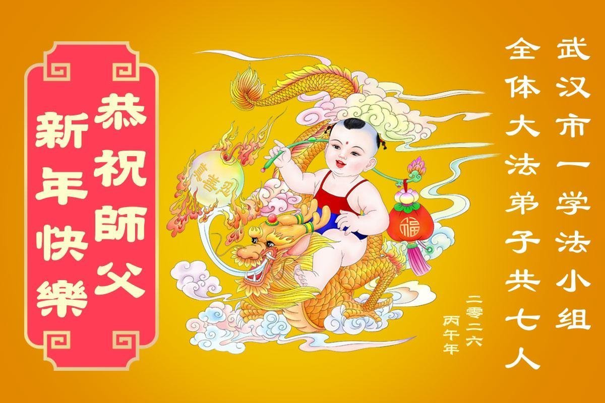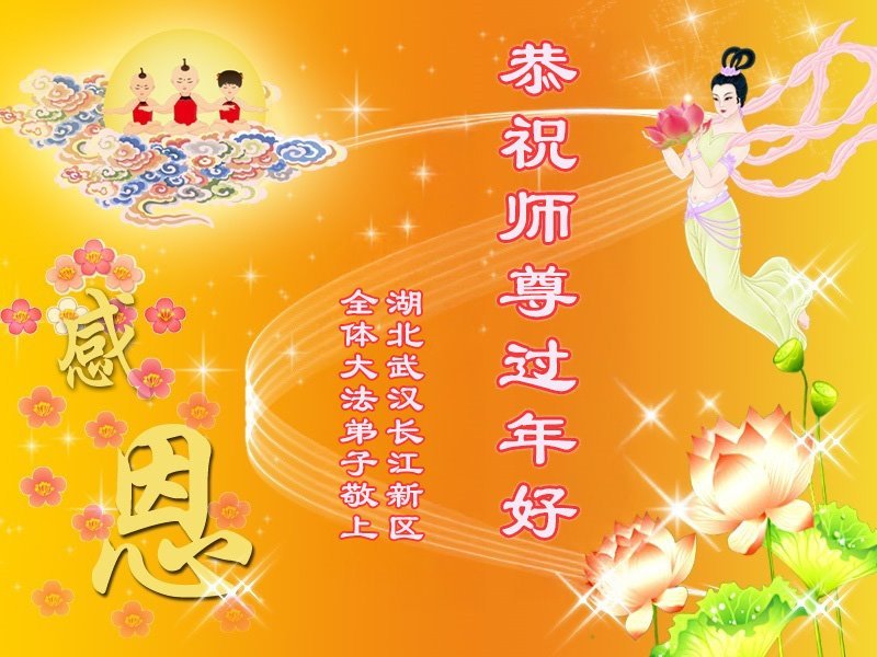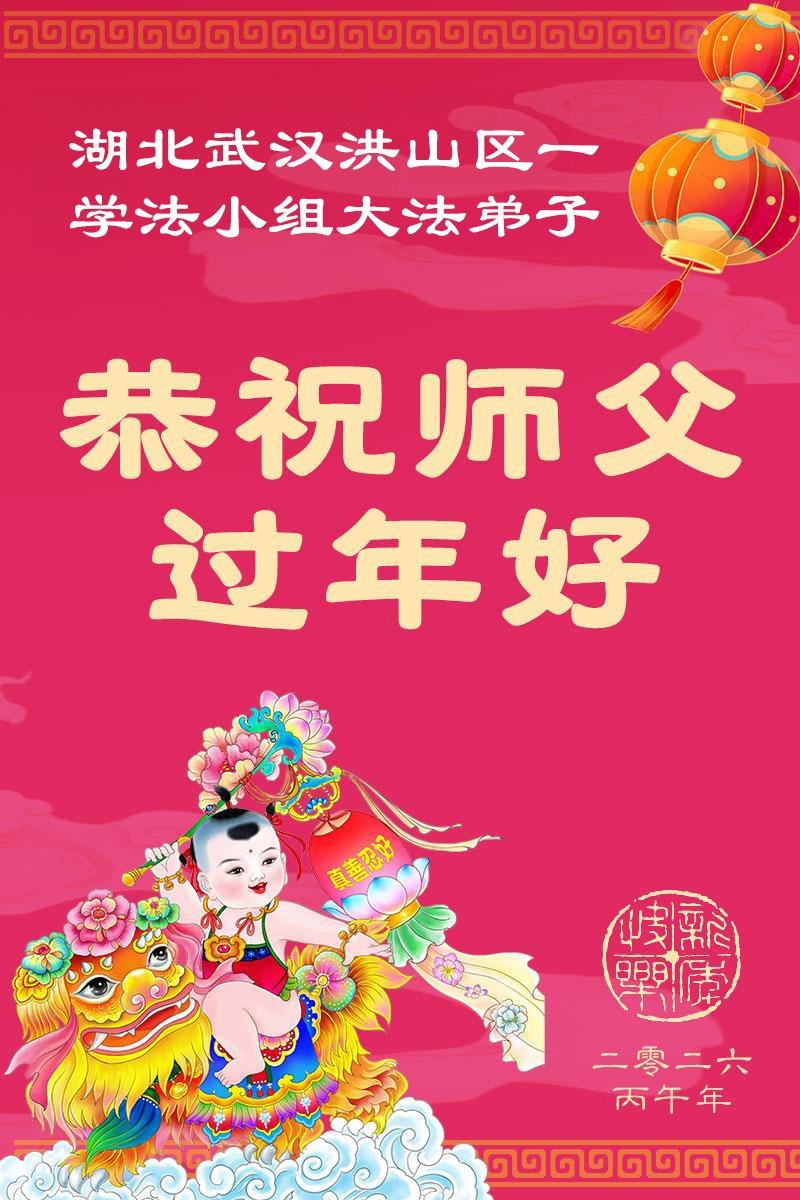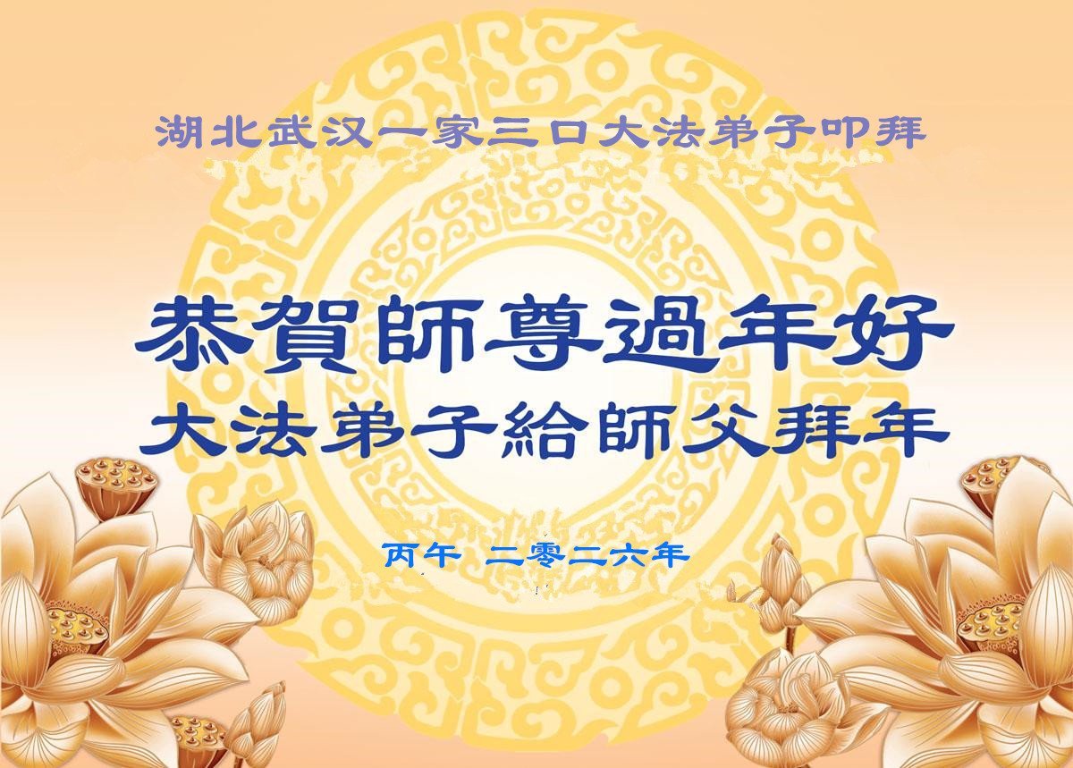 湖北省武漢市大法弟子攜家人恭祝師尊新年好!師尊辛苦啦!