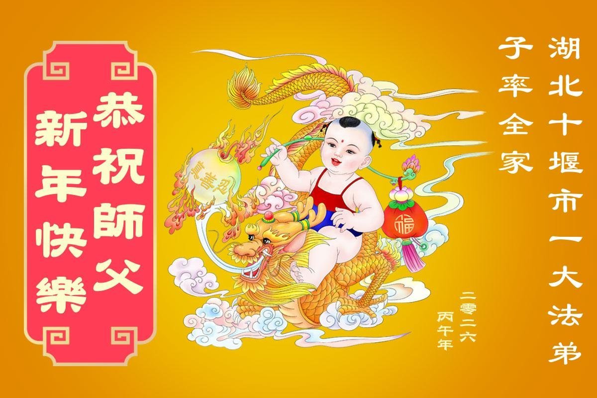 師父您辛苦了!您為弟子操了許多心,為弟子承受了很多!千言萬語也無法表達我們對師父的敬意和感恩!弟子在這裏給您拜年了,恭祝師父新年快樂!
