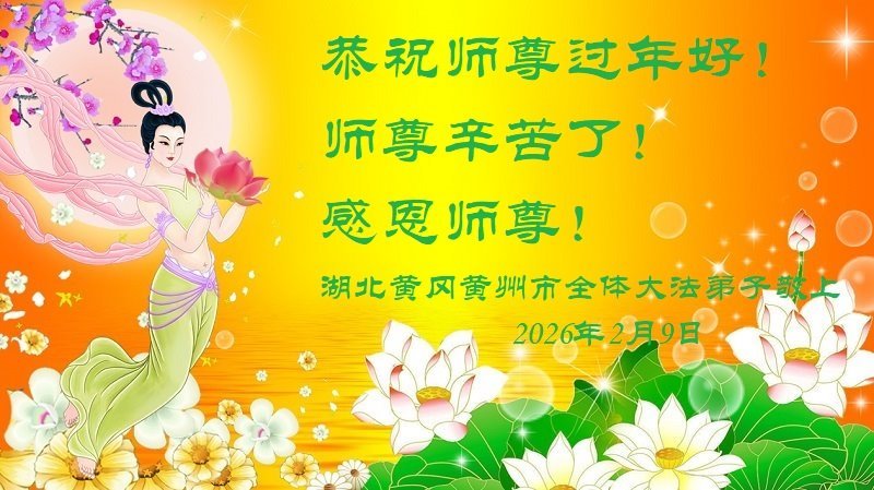 恭祝師父過年好!感恩師父始終沒有放棄我這個弟子,在新的一年裏,我一定要抓緊時間,努力修去所有的人心執著和後天觀念,跟上師父的正法進程,成為一名合格的大法弟子。