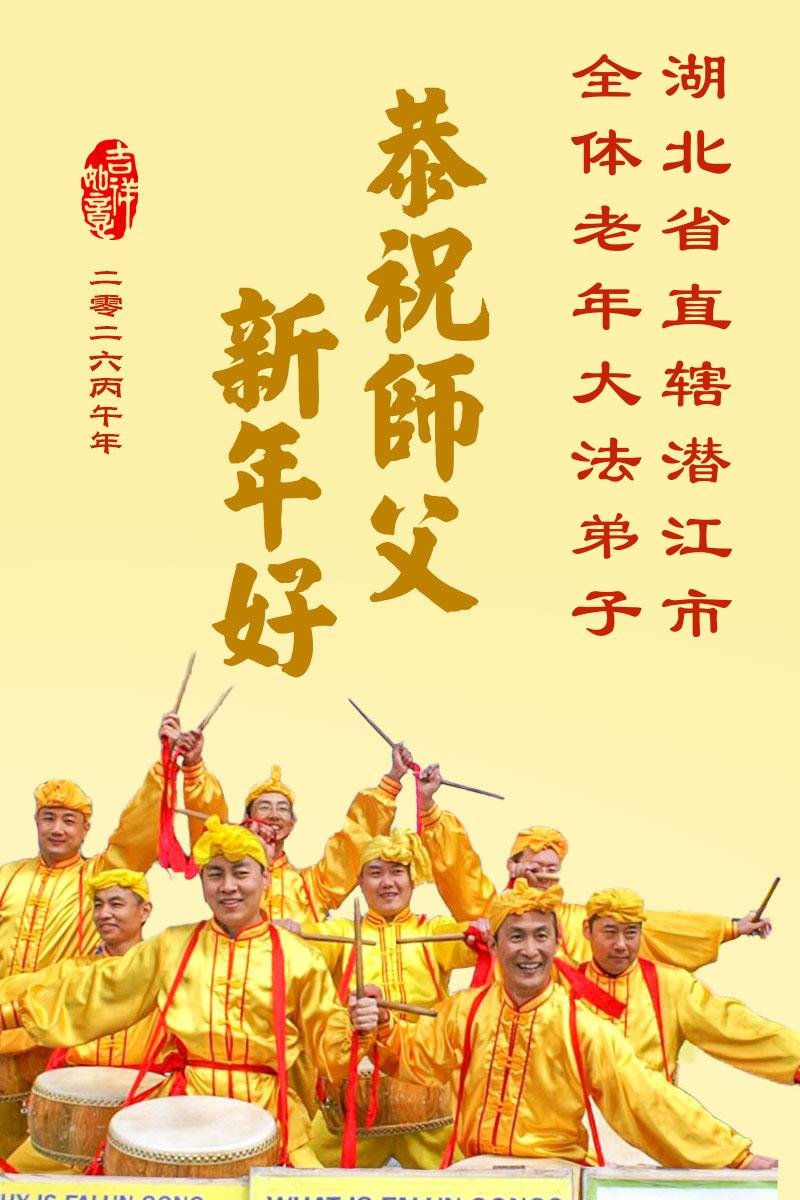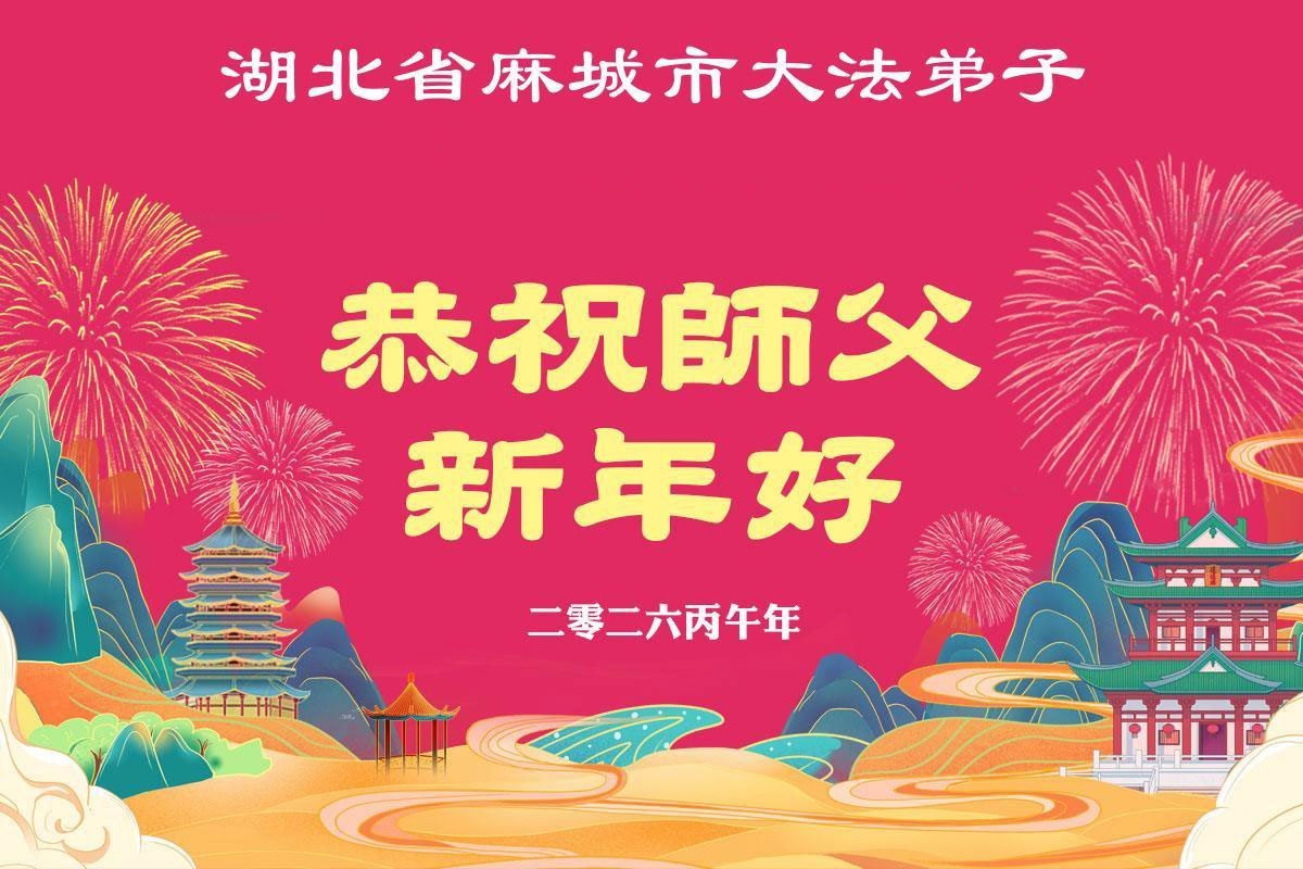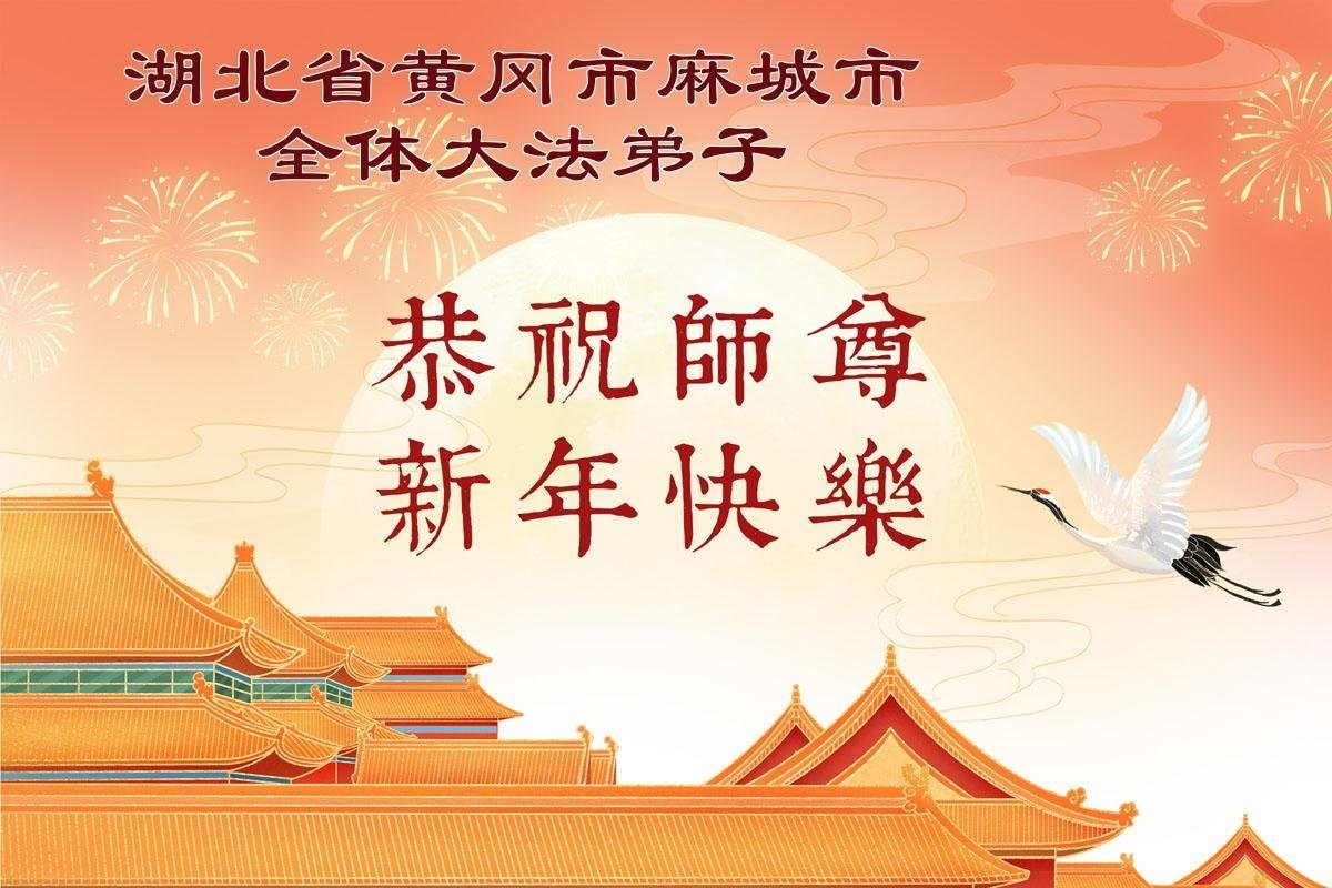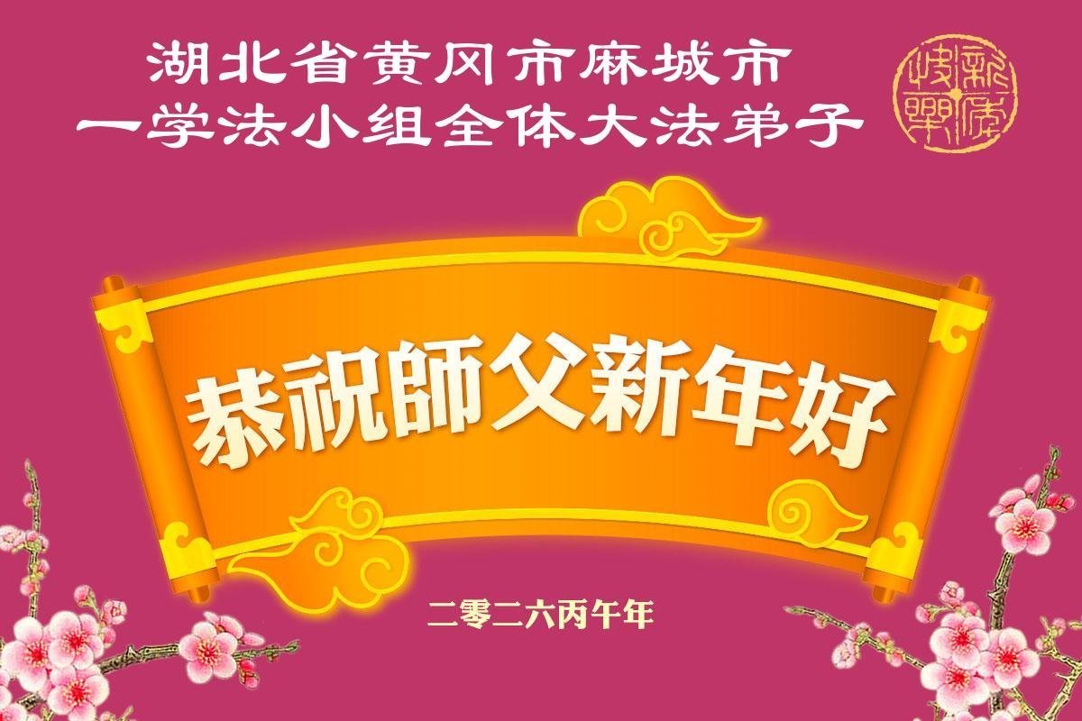 湖北麻城市全體大法弟子給師父拜年啦!