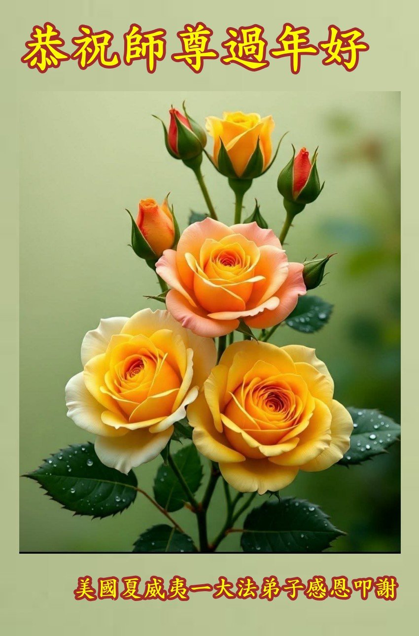 恭祝師尊新年快樂!尊敬的師父好,弟子們多年在師尊的慈悲保護下,走到今天。新的一年會繼續修好自己,多救人,走好今後的修煉道路,跟隨師父回家。