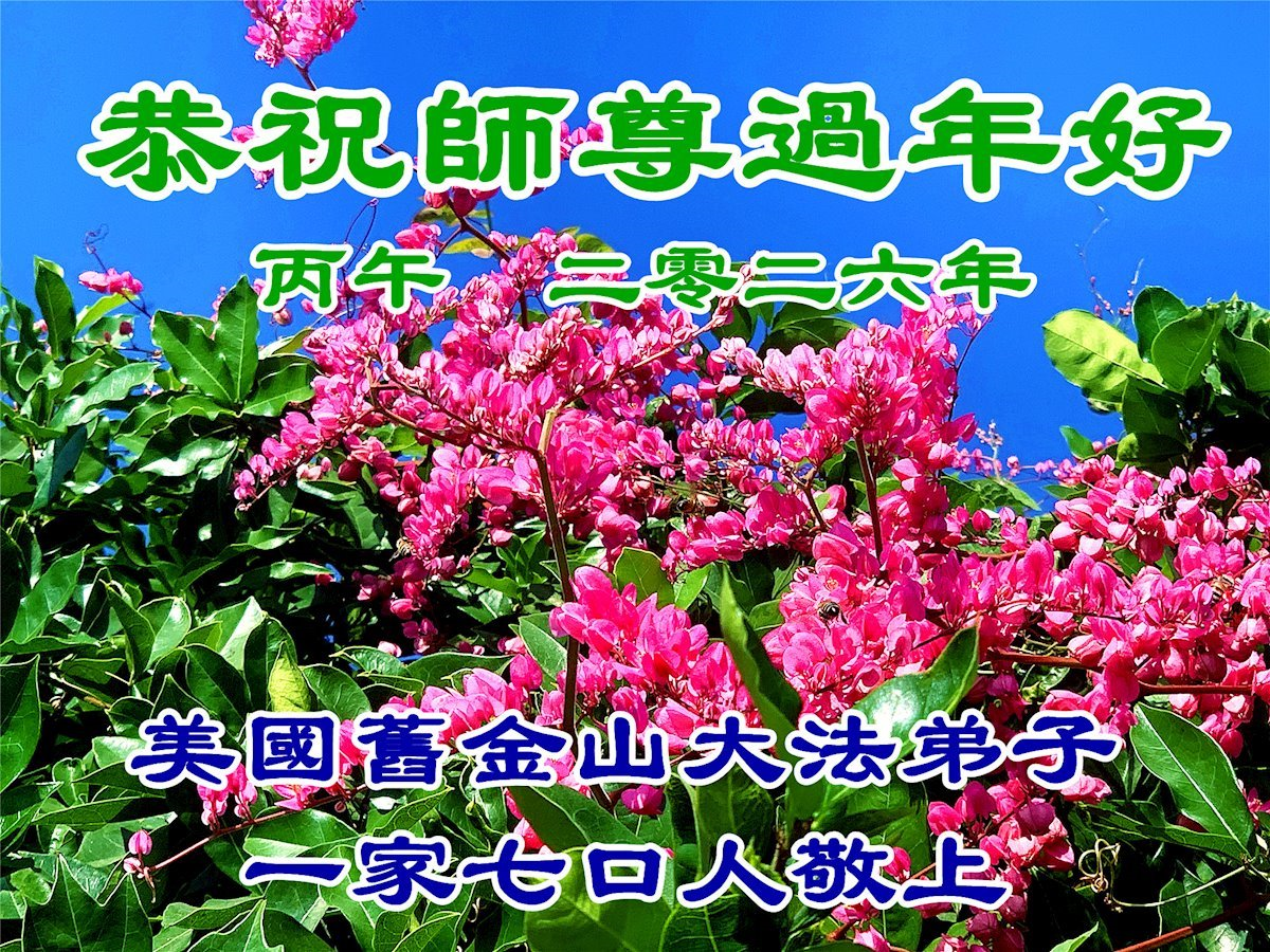 美國聖地亞哥一位大法弟子和全家人恭祝偉大的師尊新年快樂!