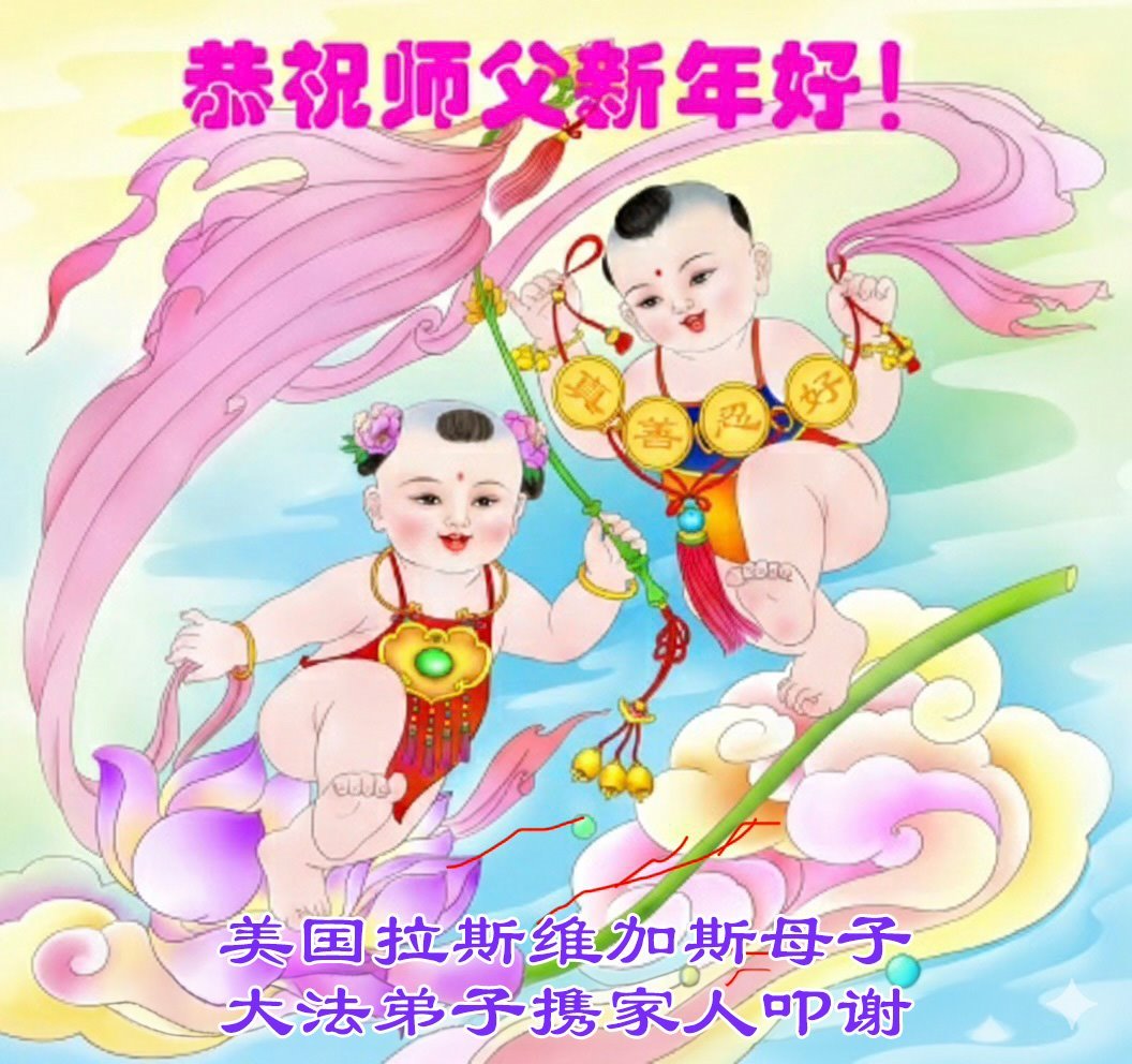 拉斯維加斯母子大法弟子恭祝慈悲偉大的師尊新年好!