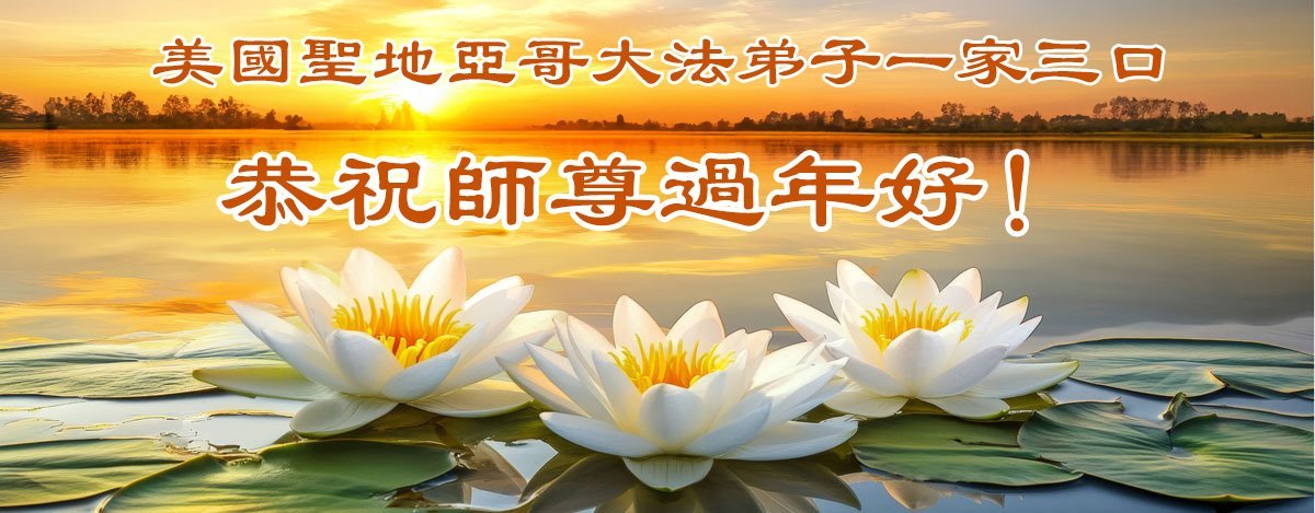 師尊,我們一家人於一九九六年在國內開始修煉法輪大法,轉眼已經快三十年了!在這三十年的歲月中,我們經歷了那麼多的風風雨雨,前行的每一步如果沒有師尊的慈悲保護,弟子無法走到今天。弟子心中只有對師尊的無比感恩!在此中國新年之際,恭祝偉大的師尊新年快樂!我們一定在新的一年中,嚴格要求自己,勇猛精進,修好自己,救度眾生!