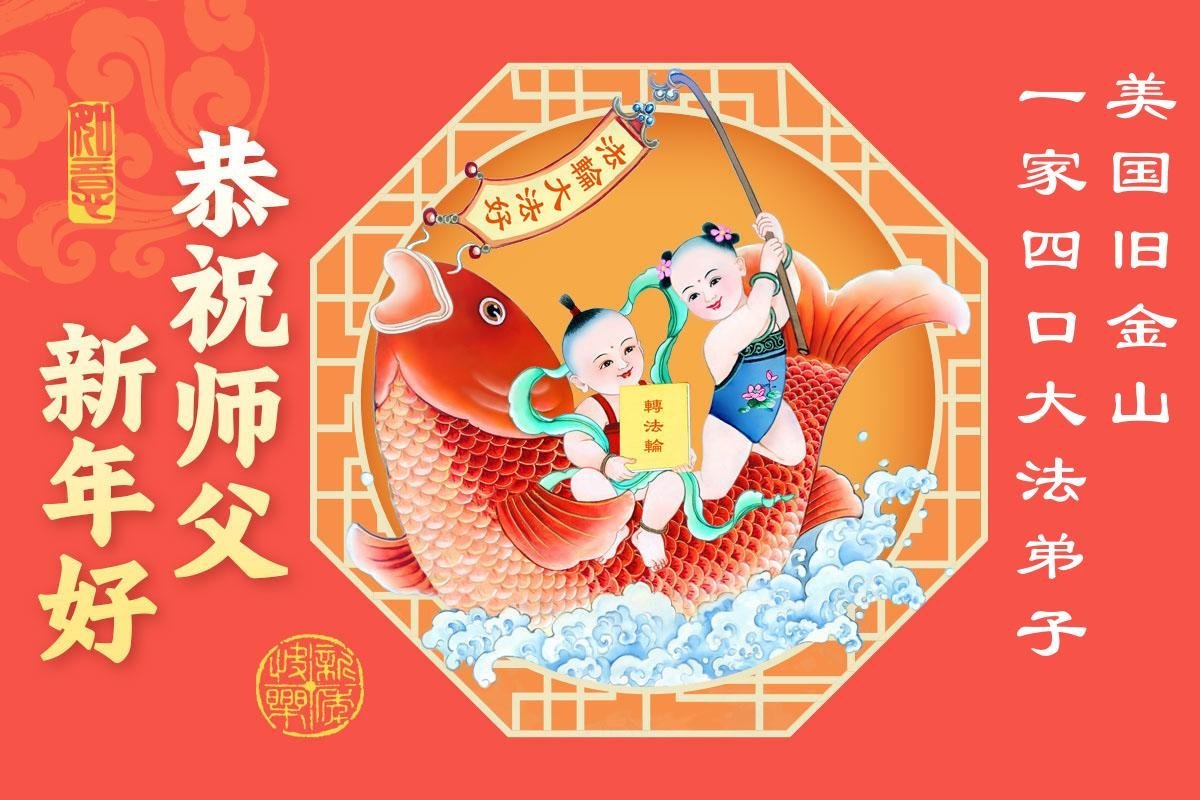 美國舊金山一家四口大法弟子恭祝慈悲偉大的師尊新年好!