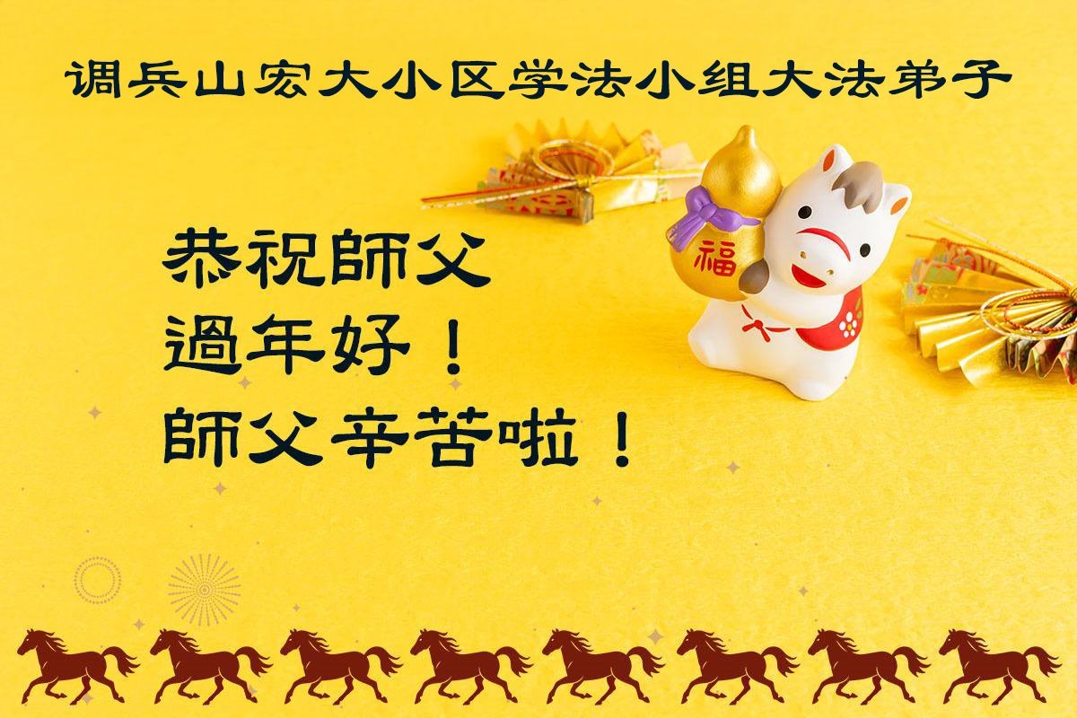 遼寧省鐵嶺市調兵山市宏大小區學法小組全體大法弟子恭祝師尊新年好!