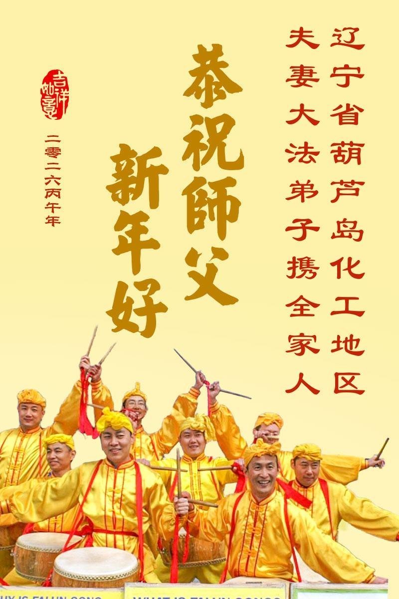 遼寧葫蘆島化工地區夫妻倆大法弟子恭祝慈悲偉大的師尊新年快樂!