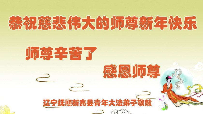恭祝師尊過年快樂!感恩師父慈悲救度!在修煉的路上,師父多次救了弟子的命,謝謝師父的慈悲保護,對師父的聖恩無以言表,無以為報。在今後的修煉中,我們要向內找,去執著,修好自己,多救人,做好三件事。讓師尊多一份欣慰!