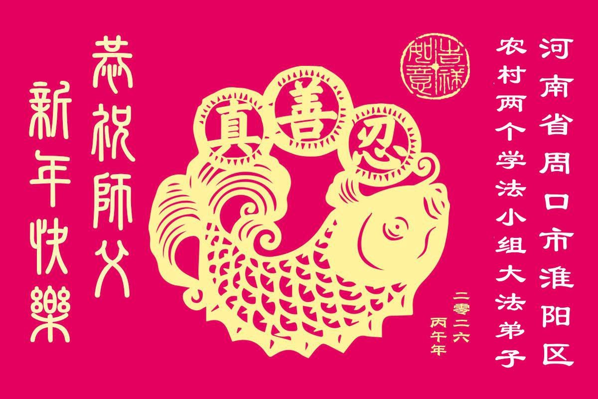 河南省周口淮陽兩個鄉村學法小組全體大法弟子恭祝師父新年好!