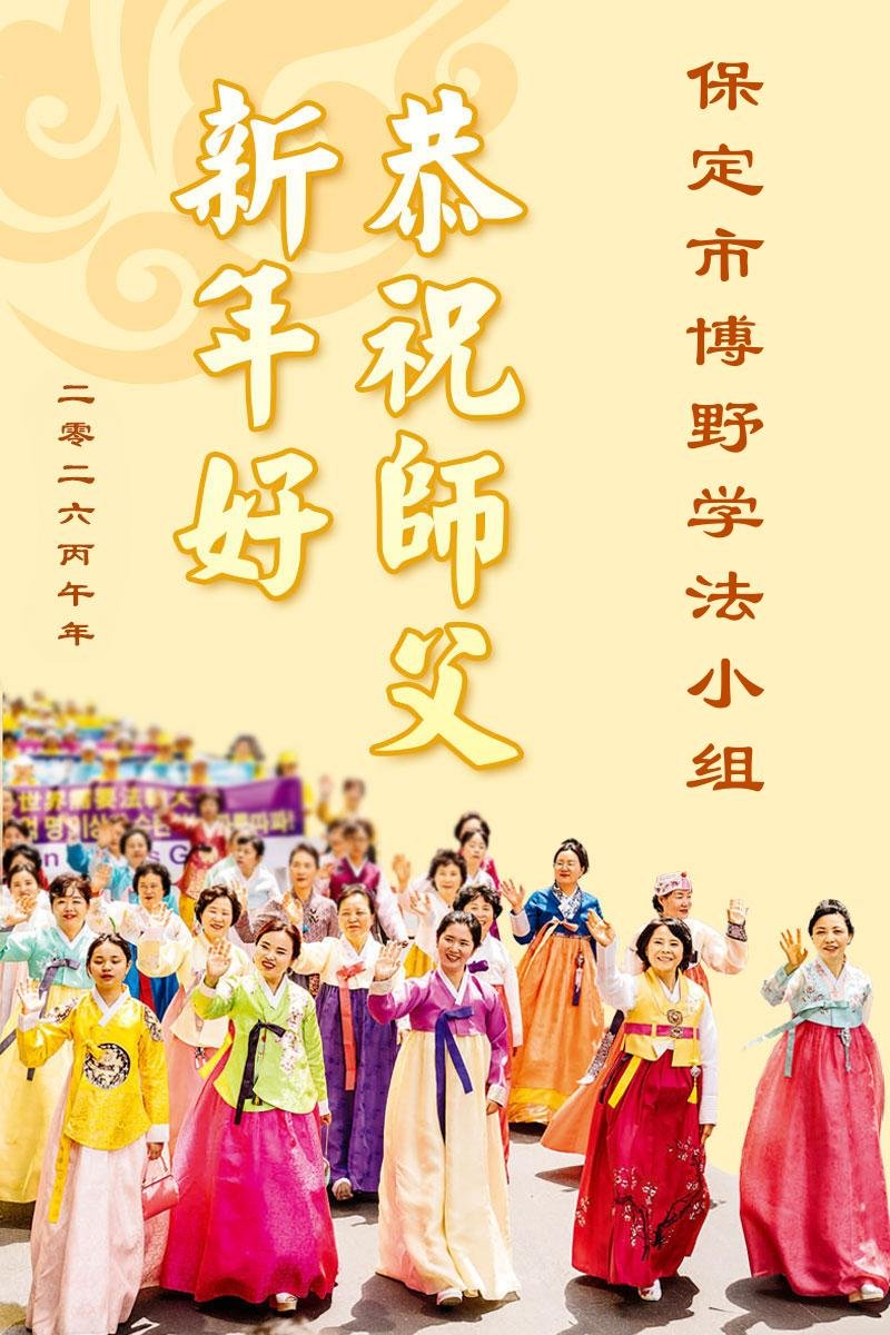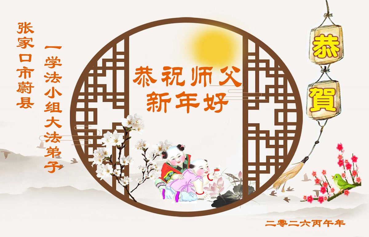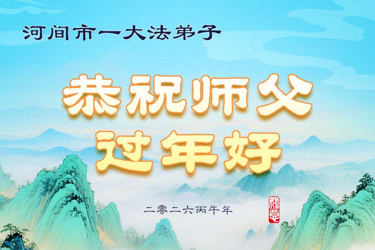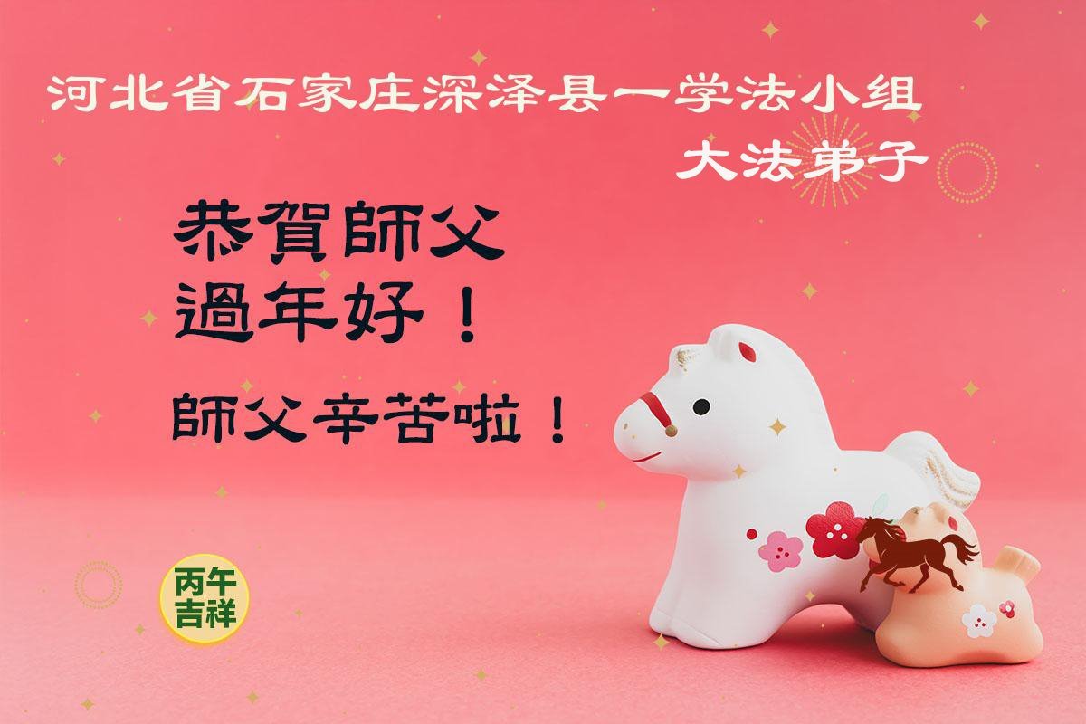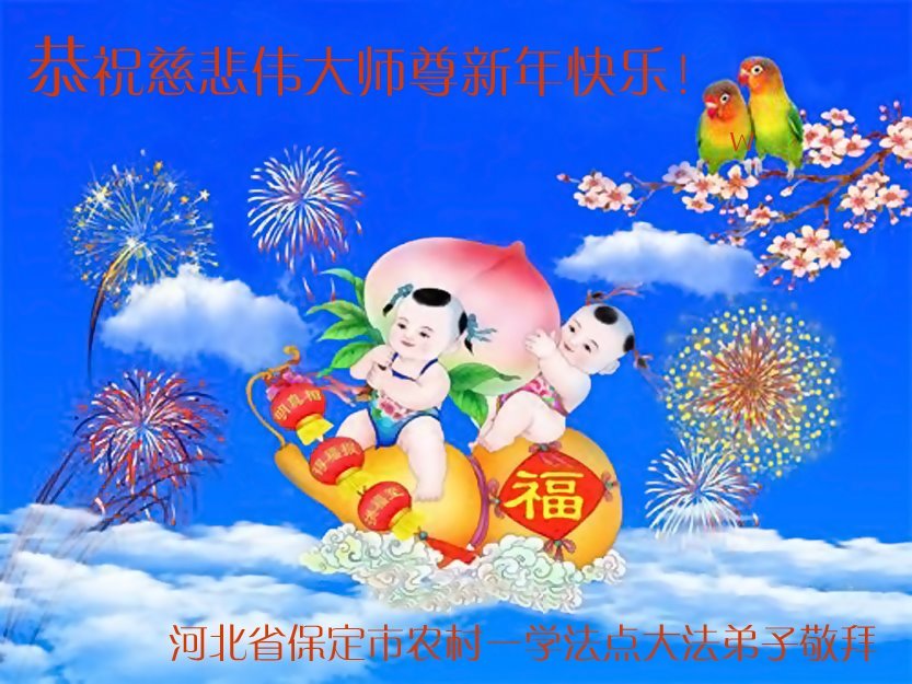 我是河北保定的一名農村老弟子,今天我代表我全村的二十多個大法弟子向偉大慈悲的師父拜年!同時我也代表支持我們做好三件事的家人向師父拜年!請師父放心,在新的一年裏,我們會更加努力多救人,去人心,做好三件事。惟願師尊笑!弟子叩拜師尊!
