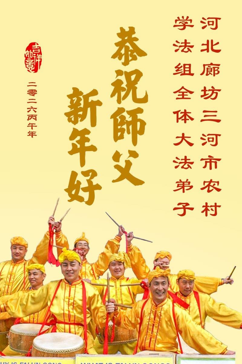 河北省廊坊市三河市城南一農村學法小組大法弟子恭祝師尊新年好!