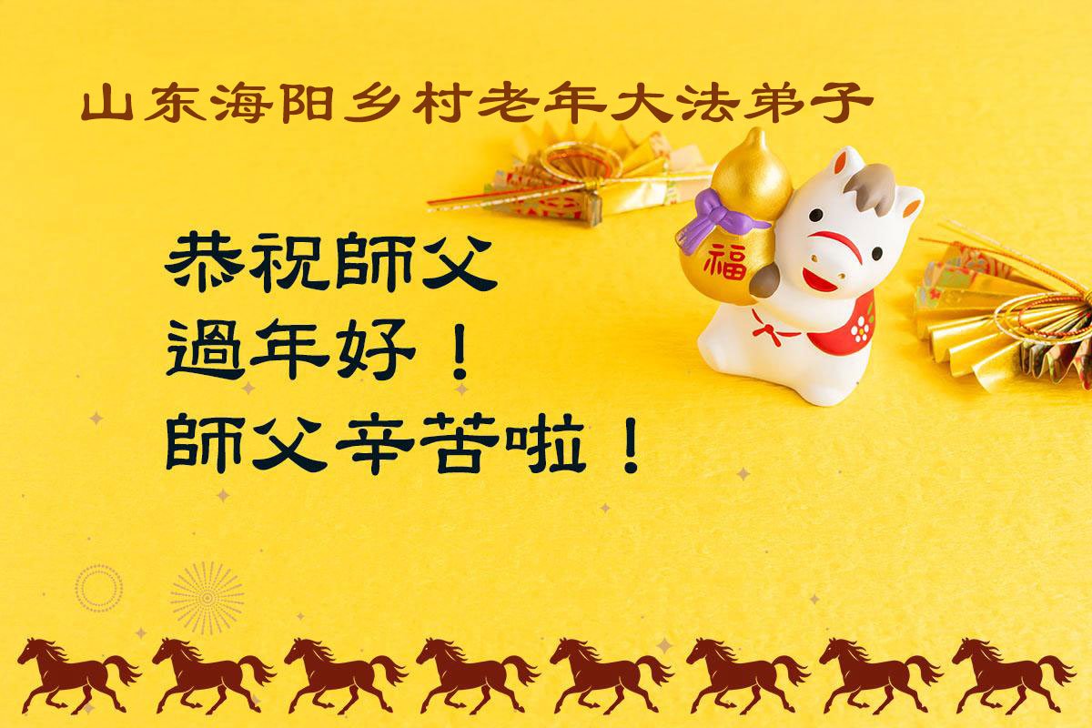 山東省煙台市海陽市鄉村老年大法弟子敬祝慈悲偉大的師尊新年快樂!