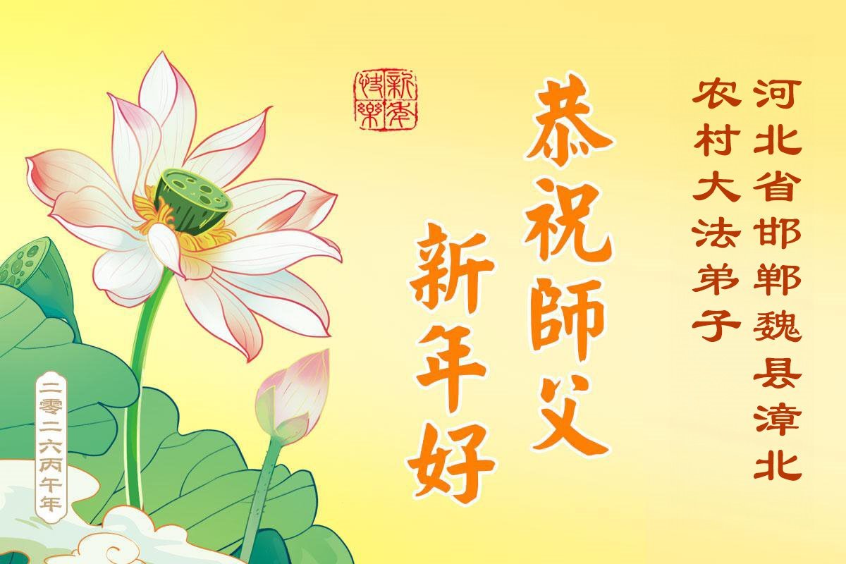 河北保定的一名農村大法弟子代表全村二十多位大法弟子和家人恭祝師父新年好!