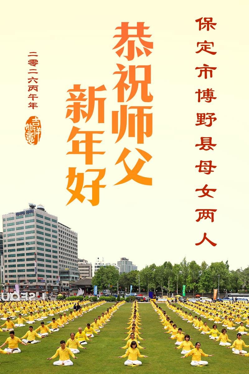 河北省保定市博野縣一農村母女大法弟子恭祝師父新年快樂!