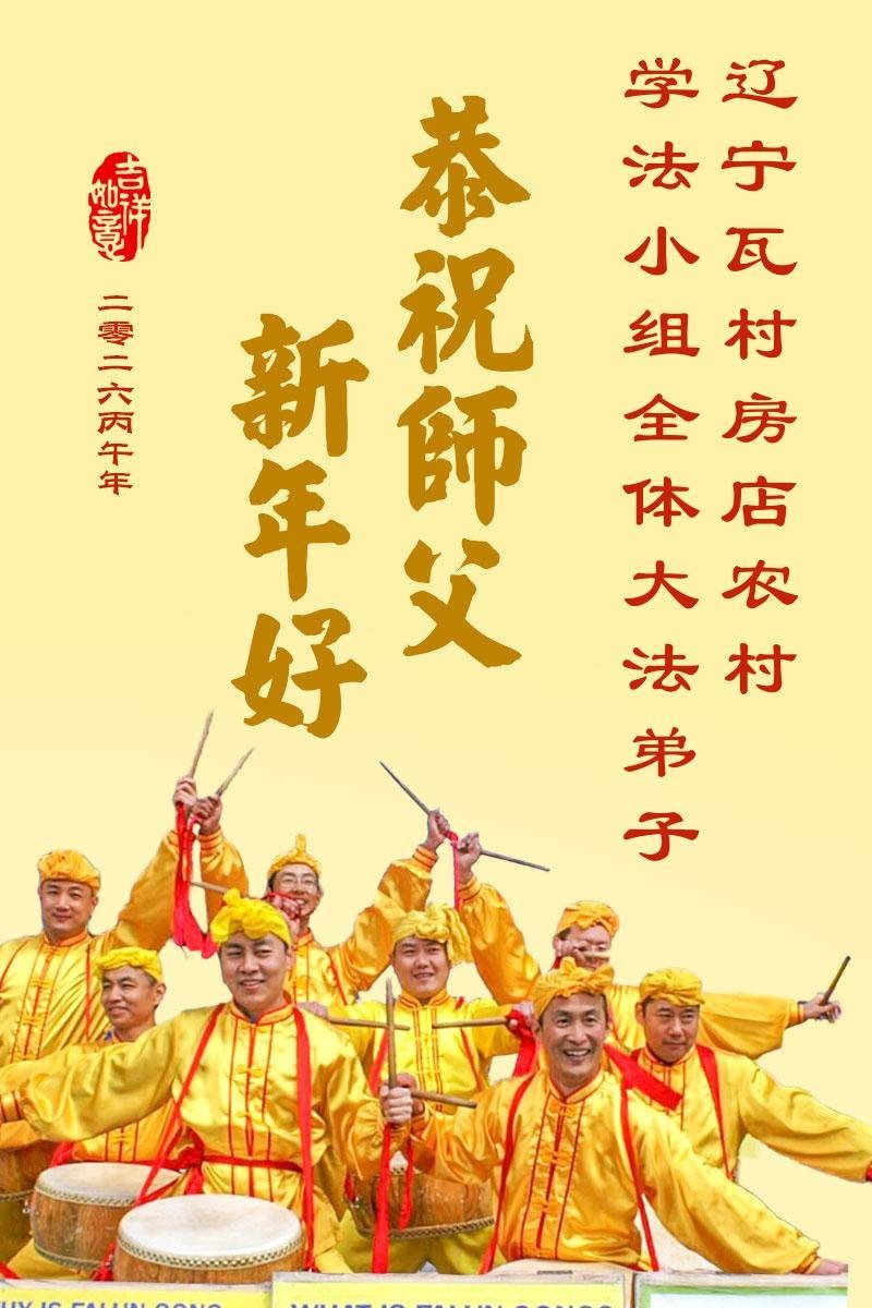 遼寧省撫順市新賓縣農村四個村十七位大法弟子恭祝師父新年好!