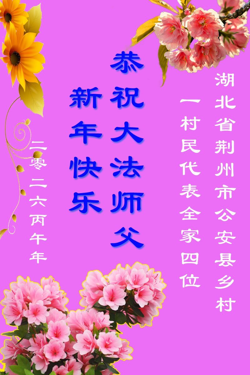 湖北省荊州市公安縣鄉村一村民代表全家恭祝大法師父新年快樂!