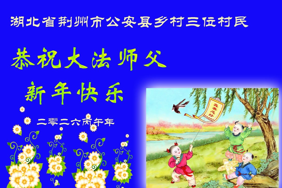 湖北省荊州市公安縣鄉村三位村民恭祝大法師父新年快樂!