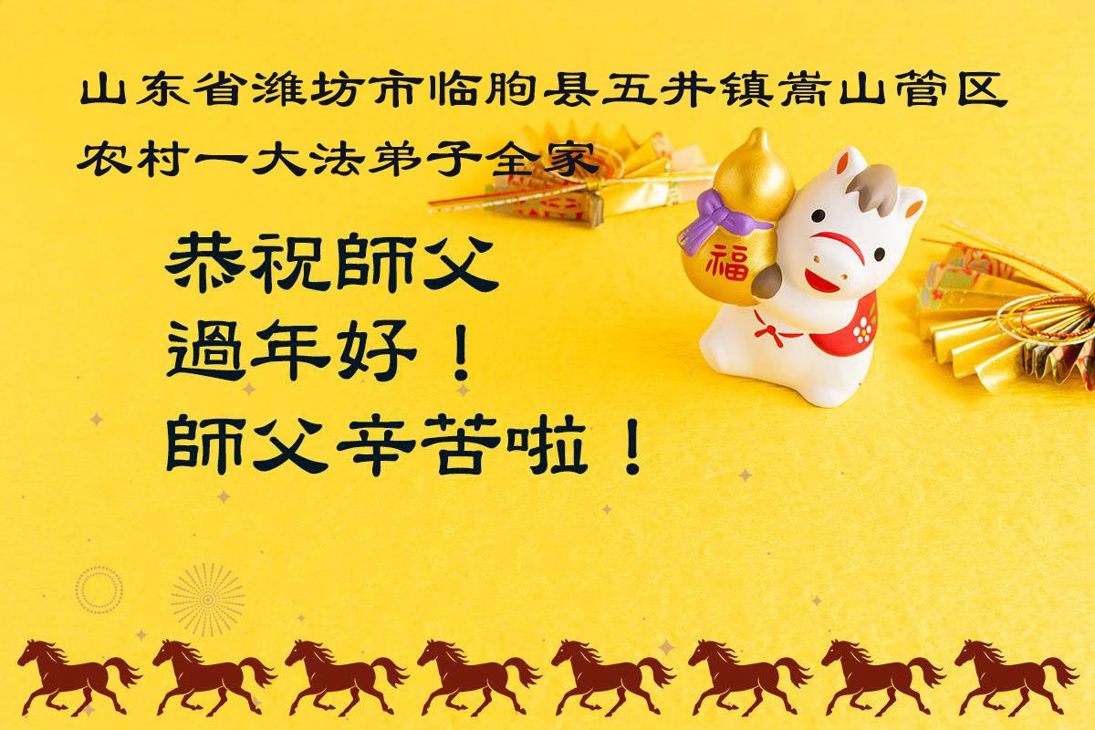 山東省濰坊市臨朐縣五井鎮嵩山管區全體大法弟子恭祝師父新年好!