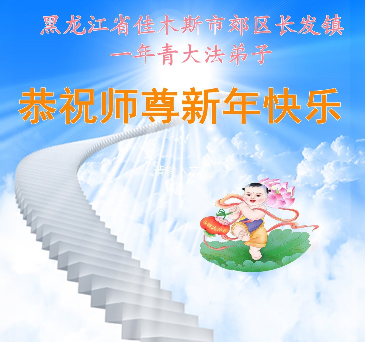 弟子恭祝師尊過年好!慈悲偉大的師尊您辛苦了!在這傳統節日即將到來之際,弟子感恩偉大的師尊慈悲救度!弟子謹記師尊的教誨,學好法,同化法,做好三件事,完成使命,兌現誓約,圓滿跟師尊回家!弟子跪拜師尊!合十