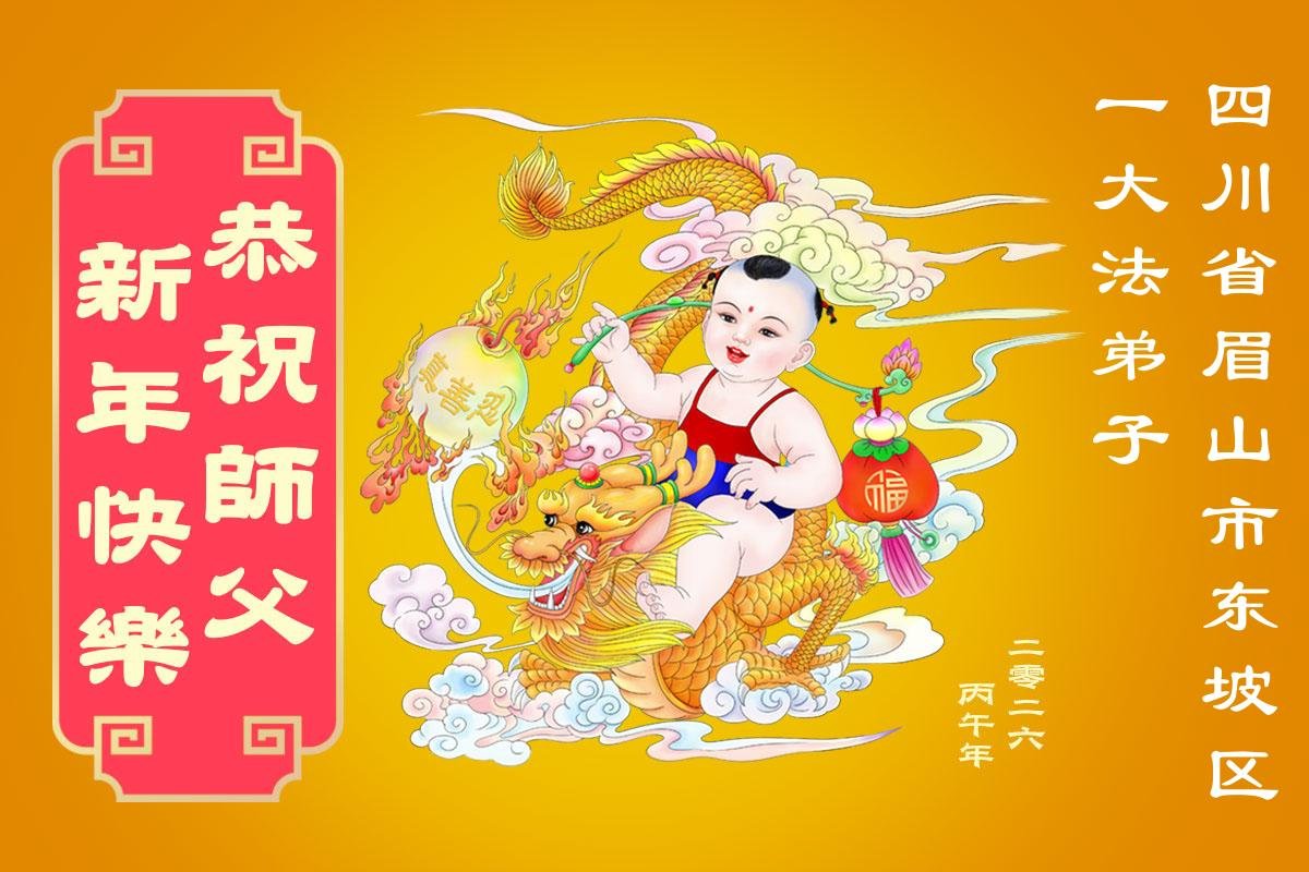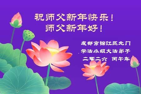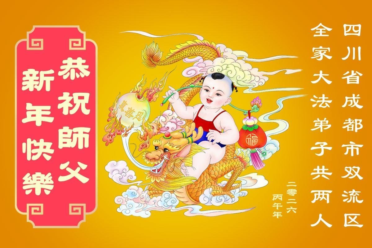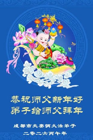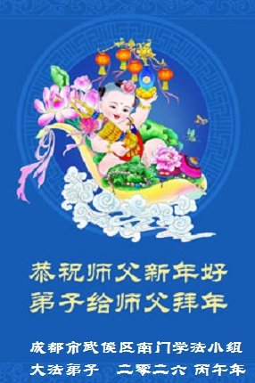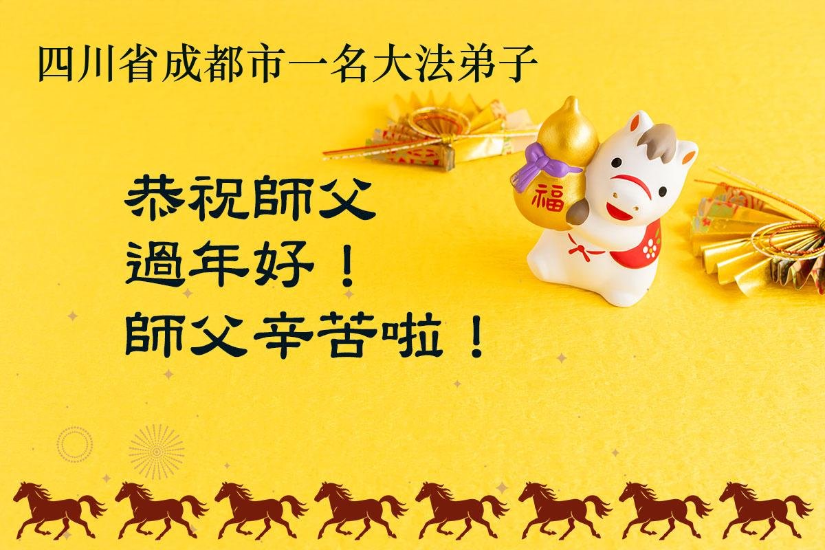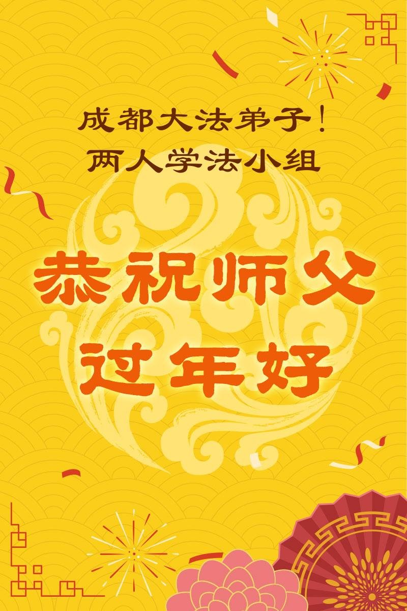 我是成都市高新區一大法弟子,在此農曆新年來臨之際,恭祝慈悲偉大的師父過年好!