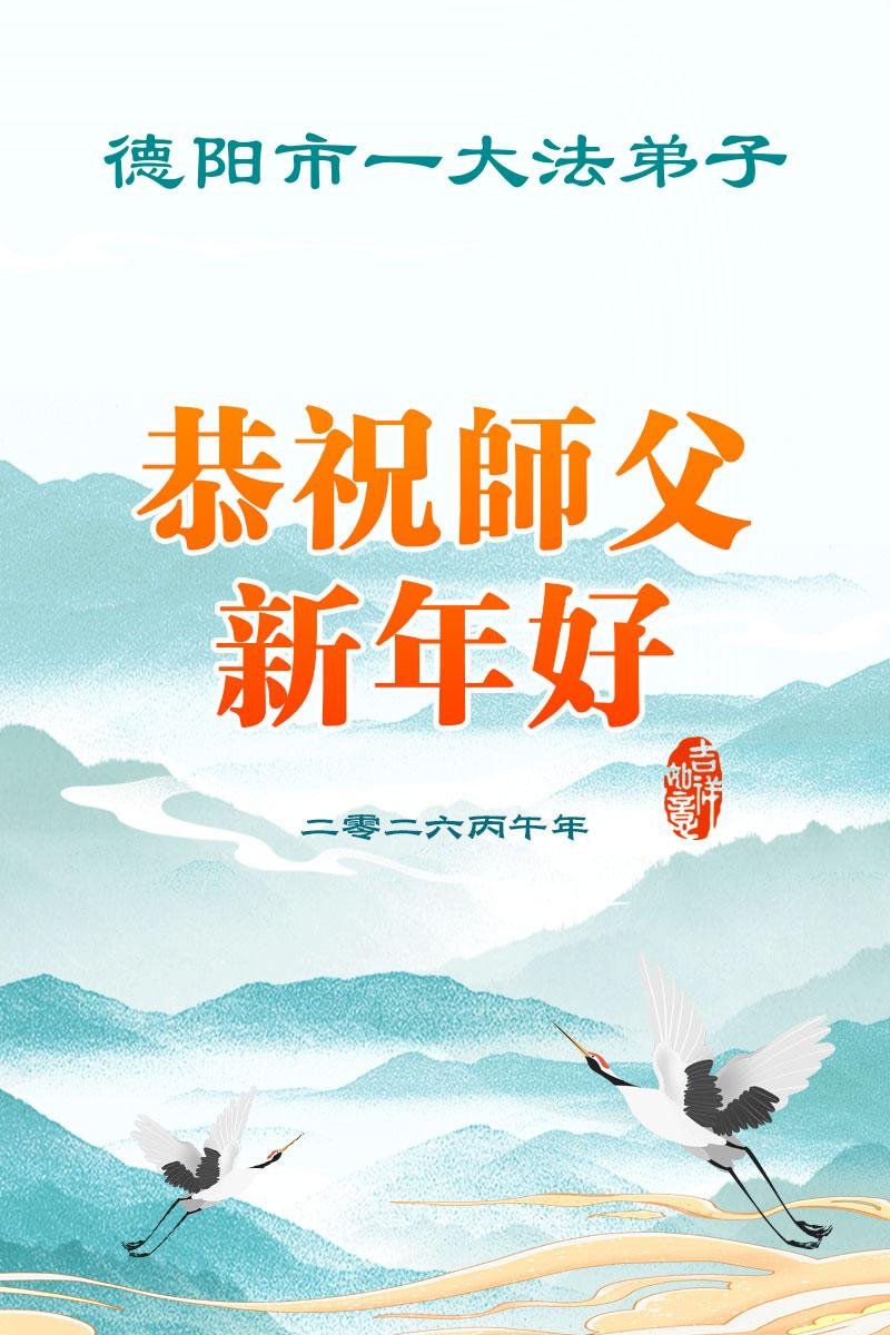 師父新年好!弟子們想念師父!新的一年裏,弟子們一定比學比修,事事對照,做到才是修,同時做好三件事,緊跟師父回家。