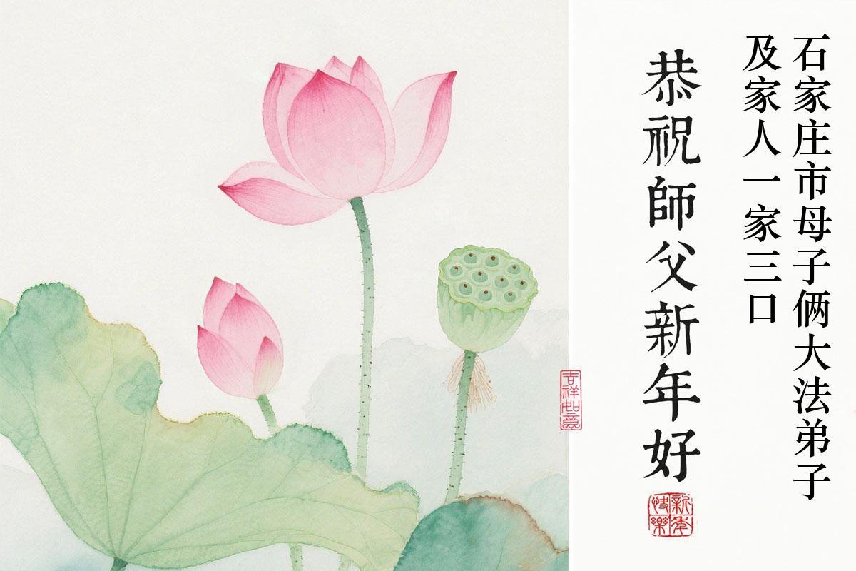 河北省石家莊市母子倆大法弟子及家人一家三口恭祝師父新年好!
