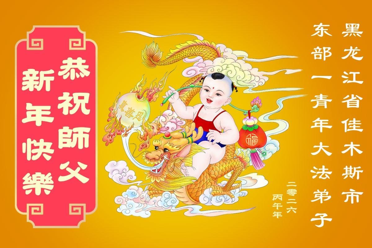 黑龍江省佳木斯市東部一青年大法弟子恭祝師父新年快樂!