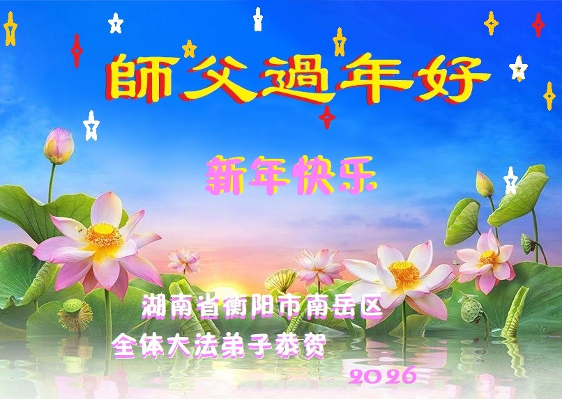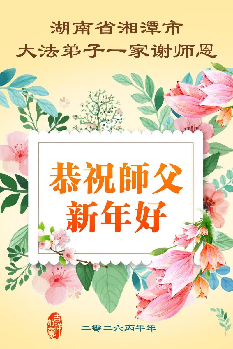 湖南大法弟子一家人恭祝師尊新年快樂!願世人覺醒,同化真善忍,擁有美好未來。願大法弟子修煉如初,完成救度使命。法輪大法好,真善忍好!